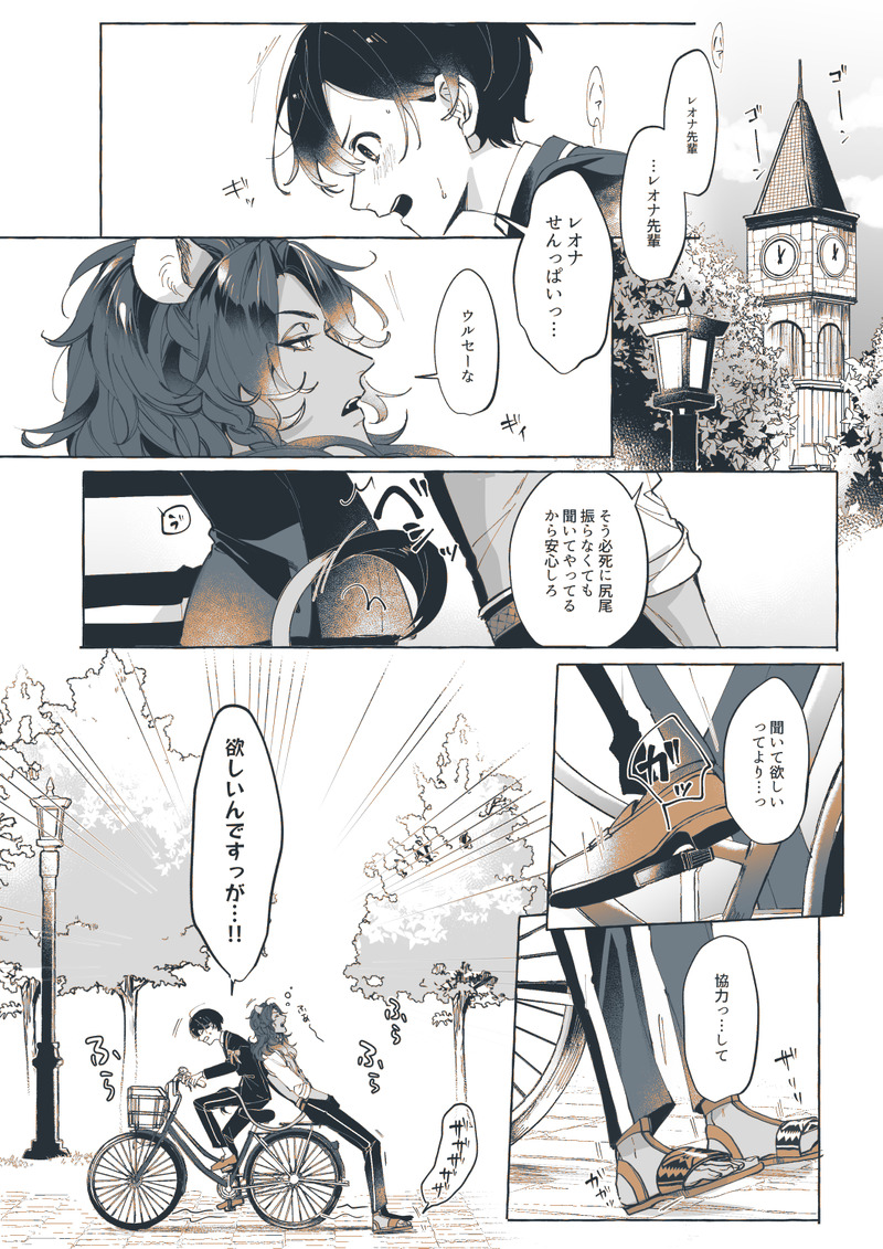 レオ監♀ちゃん、ツイッタネタの小小小話とおまけ。魔導工学がうんたら言ってる世界観のくせにブレーキ音がうるさいタイプの自転車がボロ寮には実装されていればいい。多分ガクエンチョが倉庫から引っ張り出してきた。監が近くを通るたびにぱいせんは全力で耳を伏せてうるさいと文句アピールをするし、前カゴを指定席にしている坊にも不評。そのうち見かねたジャクかデュが油をさしてくれる。