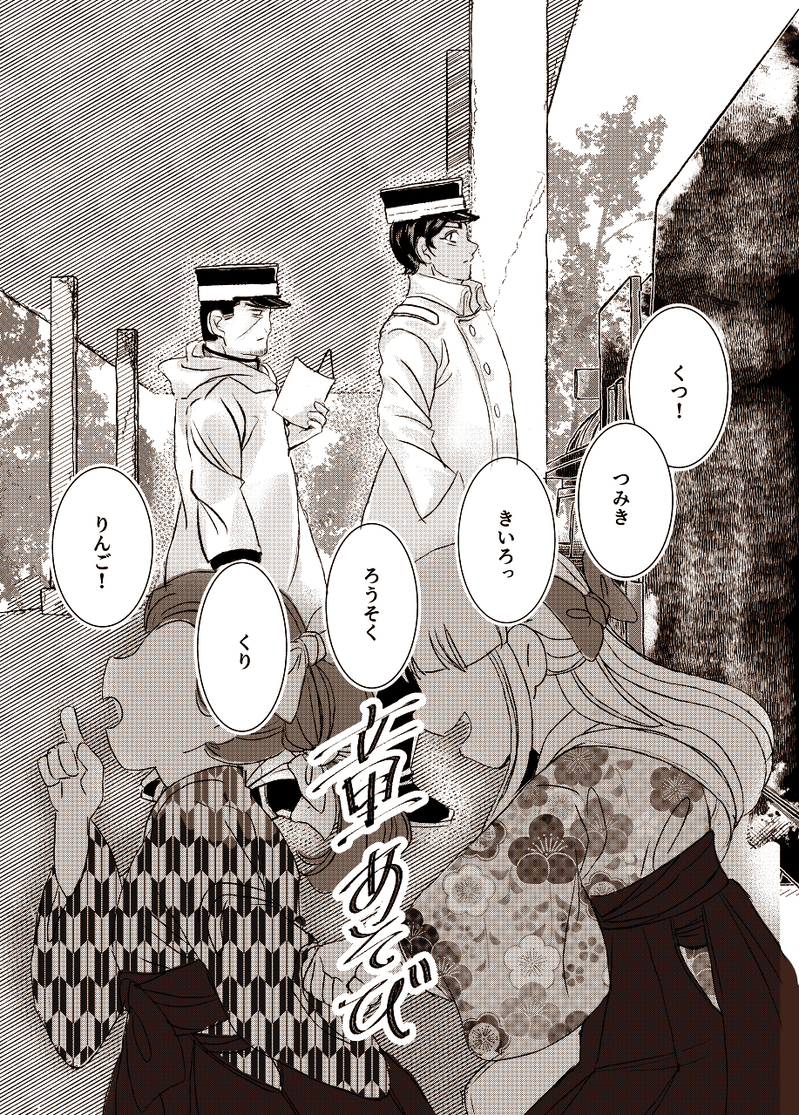 manmatocat☆quiet followPROGRESSちいさいコイがいた!Webオンリー展示用「童あそび」7P/月鯉※途中ラフのままのコマがあります(後日完成版をアップします)※月も鯉も顔が毎コマ違いますのでゆるっと見ていただければ幸いです show all(+7 images) Tap to full screen (size:917x1279).Repost is prohibited Let's send reactions! freqpopularsnackothersPayment processing Replies from the creator Follow creator you care about!☆quiet follow manmatocatDOODLEやぶこい4展示/月鯉描いたイラストや漫画まとめ※バニー絵・ケモミミ描写有 12 manmatocatPROGRESSやぶこい4展示漫画月鯉10月新刊予定の本の進捗です。進んだページがあれば随時画像差し替えます。 7 manmatocatDONEやぶ恋3展示/5P/月鯉/現パロ以前にTwitterで呟いたバレンタイン妄想ツイートの鯉登sideのお話です。あまりヤマもオチもありません。 5 manmatocatPROGRESSちいコイ2展示【紅葉の帳】12P/月鯉進捗のため、線画のみのページや途中のページもあります。夏に公開した掌中の珠の続きの話です。ヤマもオチもないです。冬に続きます。上記二作と冬春をまとめて四季の本にして1月インテ発行予定です。 14 manmatocatPROGRESS雨の日の月鯉まんが進捗 4 manmatocatPROGRESSやぶこい2展示「掌中の珠」7P夏の暑い日に二人でラムネを飲む話です。 8