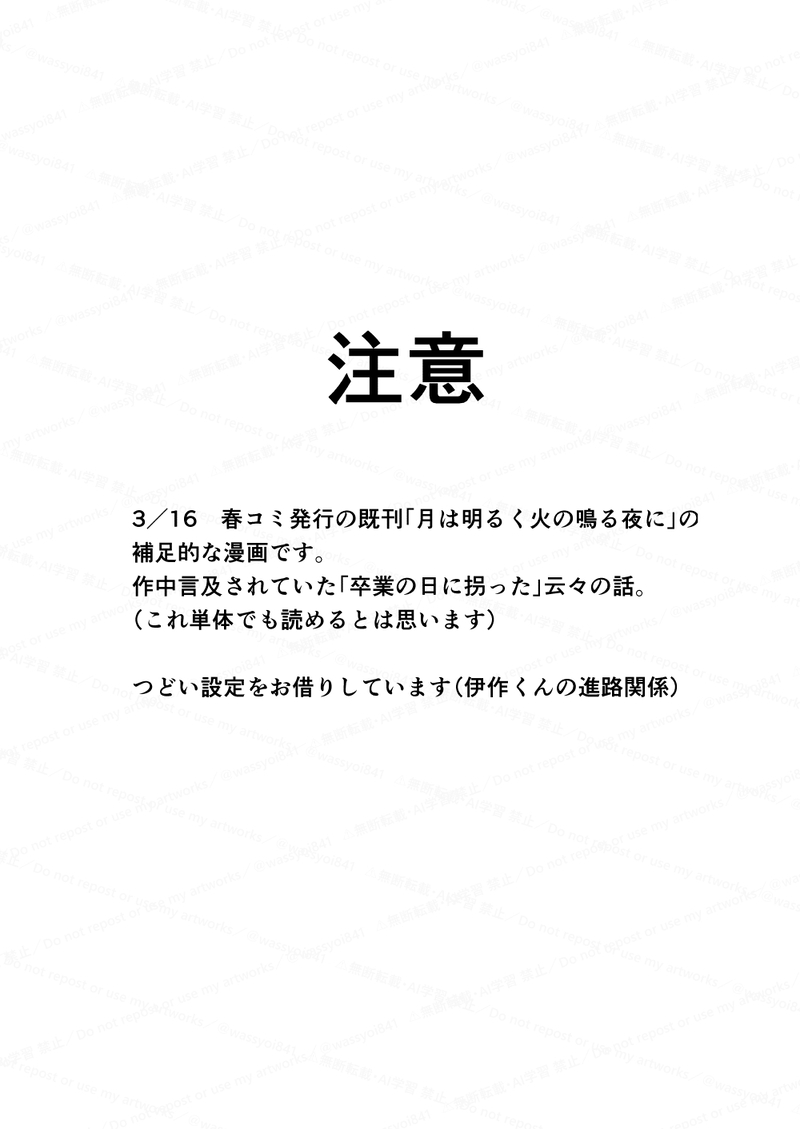 今日も元気☆quiet followDONE雑伊webオンリー『3.2.1.ではい雑伊!』開催おめでとうございます。展示していたミニ漫画です。⚠注意⚠3/16発行の既刊「月は明るく火の鳴る夜に」の補足的な内容です。(これ単体でも読めるとは思います)つどい設定(伊作くんの進路関係)をお借りしています。 show all(+7 images) Tap to full screen (size:1000x1412).Repost is prohibited Let's send reactions! freqpopularsnackothersPayment processing Replies from the creator Follow creator you care about!☆quiet follow 今日も元気DOODLE雑伊 伊にょた 現パロ(あと高坂さんと尊くんもちょっとにょた♀)エロくないけど特殊なので隔離PASS = 雑伊の年齢を続けて入力 4桁 2 今日も元気DOODLE雑伊 R18未成年閲覧禁止 成人してから見てね!PASS = 雑伊の年齢を続けて入力 4桁 今日も元気DOODLE雑伊 ちょっとR未成年閲覧禁止 成人してから見てね!PASS = 雑伊の年齢を続けて入力 4桁 今日も元気DOODLE雑伊 直接的ではないですがRシーンがあります18歳未満の方は成人してから見てください⚠鳥人ヒロミ先生の商業BL「彩おとこ」内の1シーンをイメージしたらくがき漫画です上記を確認いただいた方は下記を入力してお進みくださいPASS = 雑伊の年齢を続けて入力 4桁 5 今日も元気DONE雑伊webオンリー『3.2.1.ではい雑伊!』開催おめでとうございます。展示していたミニ漫画です。⚠注意⚠3/16発行の既刊「月は明るく火の鳴る夜に」の補足的な内容です。(これ単体でも読めるとは思います)つどい設定(伊作くんの進路関係)をお借りしています。 8 今日も元気DOODLE20250316春コミ雑伊 新刊のR18シーンのサンプルPASS= 軍師の公開日(月日を続けて/4桁の数字) 3 recommended works Bananacat823DOODLEP1)只是想畫淡淡的日常希望能呈現出文炫竣對他相赫哥以及李相赫對炫竣生活中的寵愛四年了老夫老夫(?然後相赫很清楚知道什麼話題可以討好弟弟:DP2)下班後討個獎勵ㄅ:D*OOC,請勿上升真人密碼:T1fighting 2 (ミンミ)TRAININGいちゃらぶ・🔞練習用パネルトラップ8番 鼻もぐリクエストcp アヴポルこの角度で鼻もぐってできるのかな…難しい rntnxinranDOODLE九重恋狐下(part3) 41 おたまDOODLE 4 310(さとう)MEMO250212三島ぷち遠征‐2ぶたさんもいたよぉ昔の暮らしの道具もおもしろかったねおいしいものも食べたよ三島コロッケはお写真撮る前に食べ終わっちゃったラストは地元でのお疲れごはん楽しいぷち遠征でしたん 11 tsubasa_tkmrDOODLE加工楽しい dmn_str13DOODLEイサダン🪶⏰嫉妬がわからないイサンのイサダン 1497 MUWENDAWNDOODLE 2 pakameso_pasoDONE「父なし子を生贄に」マーリン少年時代の幕間欲しいな……