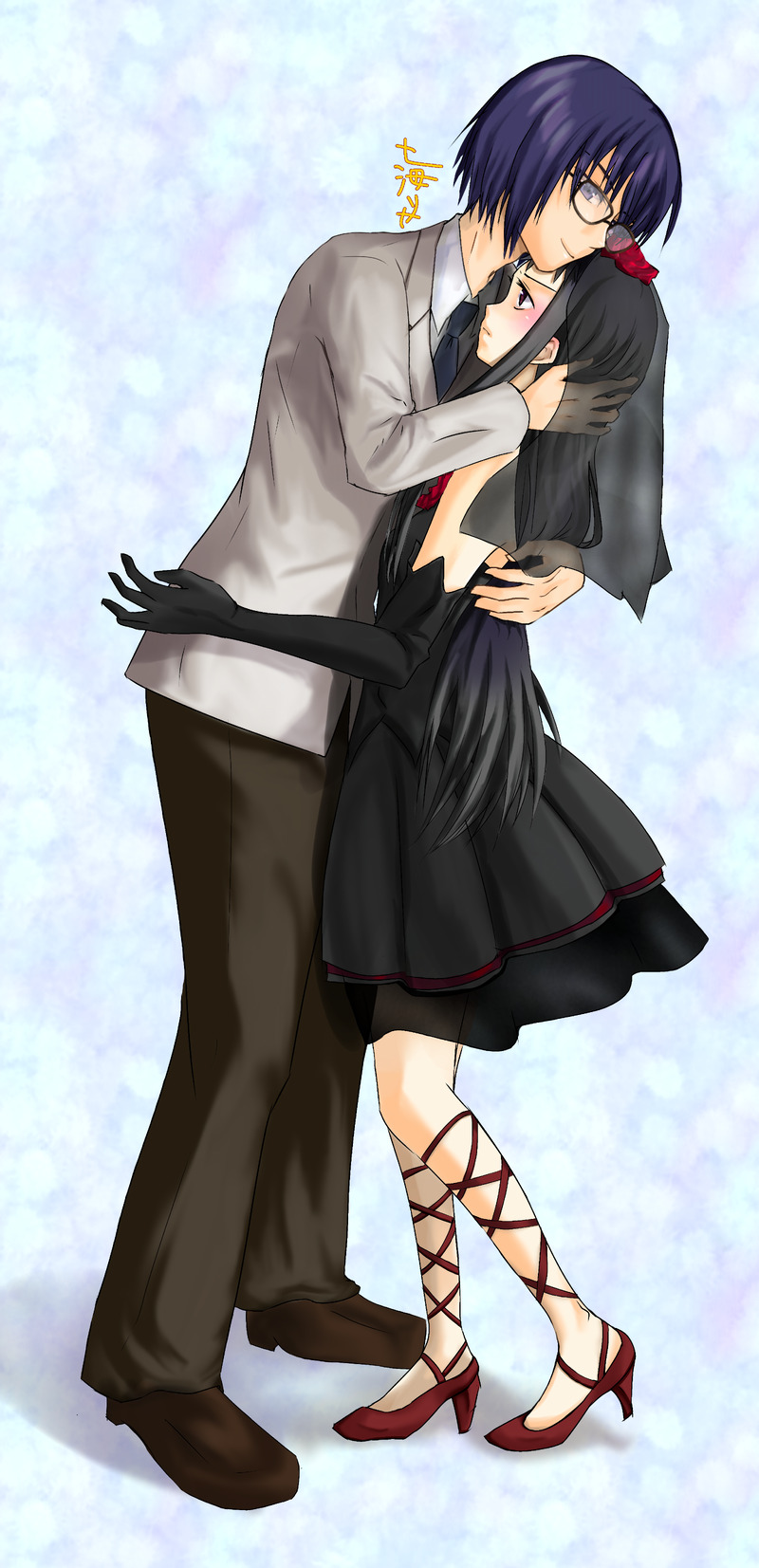 抱擁スチルの全身(ベール差分)と眼鏡なし差分と若干の表情差分。