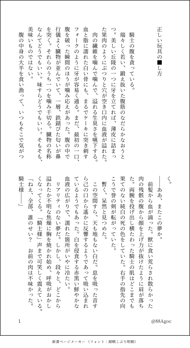 88MhOC☆quiet followDONEオカワンドロワンライ様よりお題「ケルベロス」をお借りしました※軽度のカニバ描写 show all(+3 images) Tap to full screen (size:618x1132).Repost is prohibited Let's send reactions! freqpopularsnackothersPayment processing Replies from the creator Follow creator you care about!☆quiet follow 88MhOCDONEワンドロワンライ様 お題「出会い」※死ネタ※ものすごく捏造・年齢操作※何でもいい人向け 10 88MhOCDONE教鞭エロにしたかったもの※R18※内容がないよう※本番まで至りません18↑?(y/n) 6 88MhOCDONEオカワンドロワンライ様より、お題「三つ編み」お借りしました現行イベストのネタバレがそっと含まれます大丈夫な方のみどうぞ(y/n) 5 88MhOCMOURNINGオカ※フェアウェルオズのカドストが絡んでいる※R18とするには微妙だがすこしばかりいかがわしいのでR18フェアウェルのカインくんのお洋服マジで興奮するなという話18↑?(y/n) 4 88MhOCDONEオカ ワンドロワンライ様よりお題「嫌いなところ」 4 88MhOCDONE2021/08/06 ハッピーバースデーハピバオカ 8 recommended works 弯弯贼咯贼咯DOODLE⚠️陆坂⚠️GB⚠️♀器官 18+?(yes/no) pi zanopizazzDOODLE舔一下浦西吧 Octocomics-BLDOODLE 🫀🔪🩸DOODLE3p、抹布化的1非常雷人請注意避雷18↑? 2 ぽる。INFO5/4 スパコミ2日目 【東4ホール・え65b】アルカヴェ既刊サンプル『キミの話』R-18B5 / P46 / 600円(会場価格)2人の気持ちが駆け巡るノンストップな初夜本です!とらのあなさんで通販も取り扱い中⇒https://ec.toranoana.jp/joshi_r/ec/item/04003122296818歳以上閲覧可⇒パスワード18才以上? yes / no 15 ほしひとMOURNING金塊争奪戦◯年後鯉登音之進は中尉になってますあまりペケッターで大っぴらにできないかなと思ったのでこちらでも供養します 3 Octocomics-BLDOODLE nameko135PROGRESS「きみ」としあわせになるはなし。の続き進捗。ガトノワ/ガトホワ/納占。 1216 nu7_lqDONE一緒におわりに向かいましょう船搭載のAIコンピュータと仲がいい隊長の話です 5