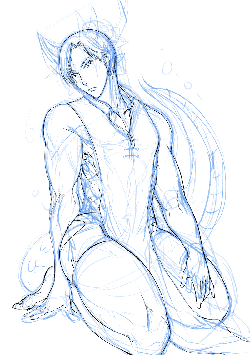 角、尻尾、頭の花飾り、チャイナ服の装飾は塗りの後実線描き足す