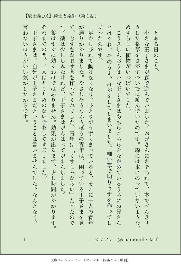ksifシリーズ(匡啓さん)の中世パロ「騎士と薬師」の1話(2024/05/14版)