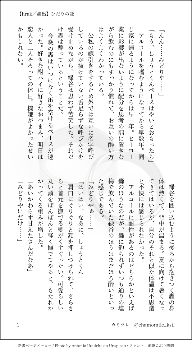 支部に載せている続きもの軸の二人ですが、この話単体でも読めるはず。