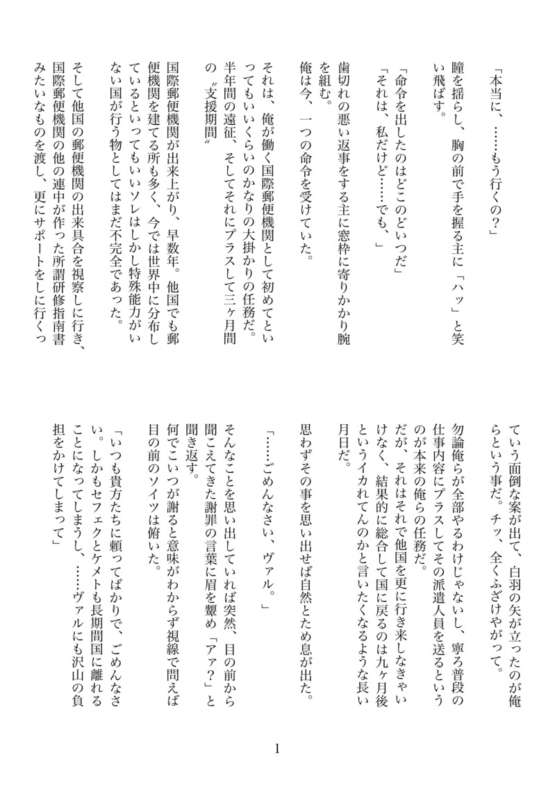 ヴァ:主を好きな事にはもう自覚をしている。でも言わないし言うつもりもない。俺にただ命じてればいいんだよ。他の奴らじゃなく、俺にな。