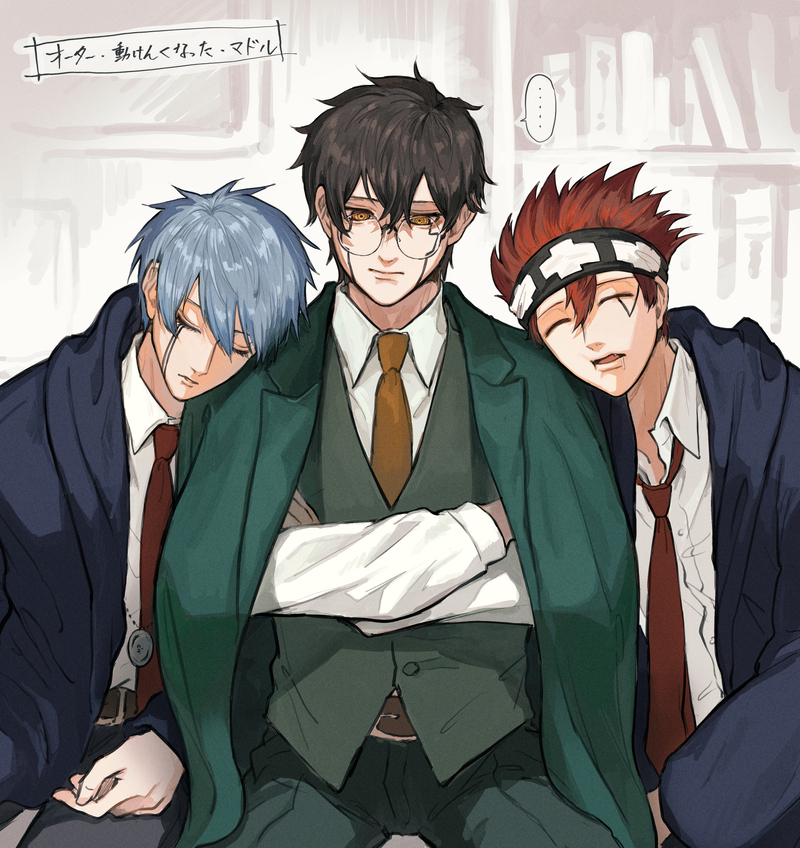 修行の一環でおとずれた執務室的な部屋で会話していたはずが、気が付いたら両サイド固められていた的なイメージです。なんやかんや少しの間じっとしていてくれそうかなって…。