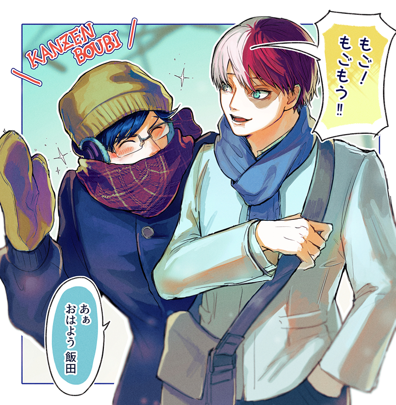 ぐっと冷えた日のニュースにモコモコになってる人が映り込んだところから閃いた轟飯。実際のテンヤはめったにここまで防寒しないかもですが、突然の寒波襲来の時は完全防備委員長がみられたらいいな…可愛いな…。