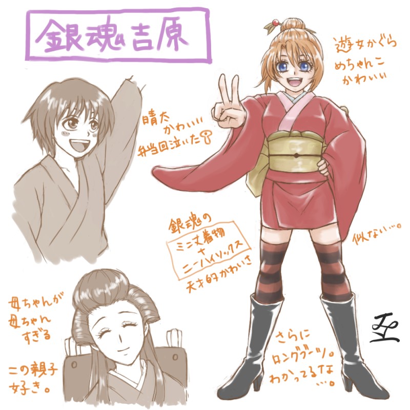 髪型、ミニ丈着物、ニーハイソックス(ボーダー)、ロングブーツのバランス完璧。かわいい。かわいいは正義。