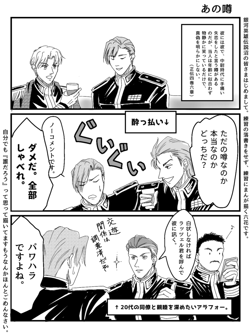六花一雪(りっか)☆quiet followPAST20210507【あの噂】銀英伝ではじめて描いた漫画。初手から石黒版オリジナルエピソードを道原版で描く狼藉。 ##銀英伝 show all(+12 images) Tap to full screen (size:1200x1600).Repost is prohibited Let's send reactions! freqpopularsnackothersPayment processing Replies from the creator Follow creator you care about!☆quiet follow 六花一雪(りっか)REHABILI【202402】フリーレンがかわいいのでリハビリをはじめた。線が生まれたての小鹿のようだ。 3 六花一雪(りっか)DONE202305びんさが、トルフィンとケティルの旦那の出会いまんが 8 六花一雪(りっか)DONE2023年3月~5月びんさがまとめ 11 六花一雪(りっか)DONE2023年1月~5月にかけてツイッタにぶん投げてた銀Aのまとめ。 12 六花一雪(りっか)DONE20230408びんさが2期4話を見てぎゃーってなって勢いで書いたやつの清書。小説だよ。何もおこらないエイトル。 17 六花一雪(りっか)DONEノイエ版ミュラーはリップシュタットの間なにしてたか妄想の限りを尽くした。ビッテンフェルト提督の出番はほぼ無い。https://poipiku.com/3413442/7567066.htmlの続き。 26404 recommended works ヴァンピール潤DOODLEこれは買ってみた葬送のフリーレンって漫画の主人公さん。1巻だけ読んだけど良き。ちょっとだけ女の子描きたかったので。 つくね子DOODLEフリーレン toetora_tigerDOODLE kitsunoDONEアニメ放送祝いで描いたフリーレン。 シン/今年もプロメア見れる嬉しいDOODLE昨日買った黒いノートに練習~さすがにアタリがないと無理なので下絵してから白系メタリックペンでゴリゴリ。雑誌サイトの作者作業動画がとても役に立ちました…! 2 へいみりらDONEフリーレン てきとDOODLE頑張りました😄 Iyokan_AzumaruDONEお題箱より飲酒した状態で立ちバックされる葬送のフリーレンのフリーレン はるあられDOODLEフリーレン