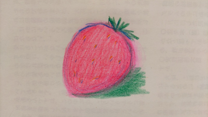 見ないで描いたイチゴの色鉛筆画。やる気なし。