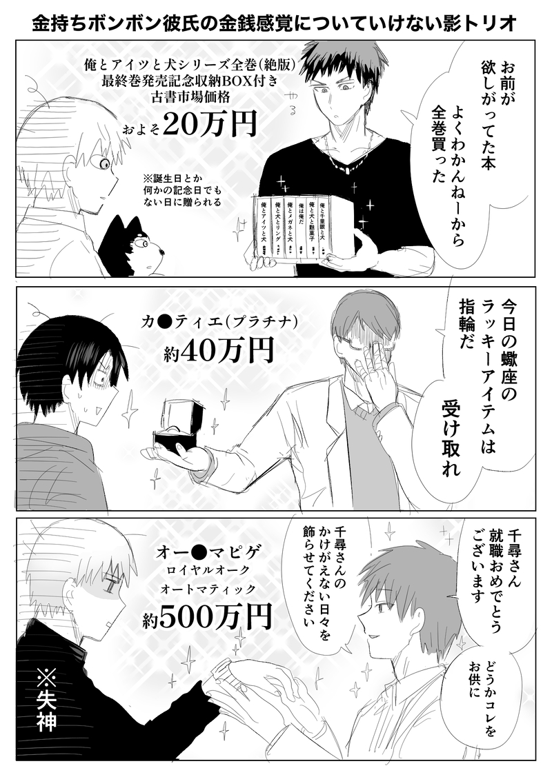 金持ちボンボン彼氏の金銭感覚についていけない影トリオ