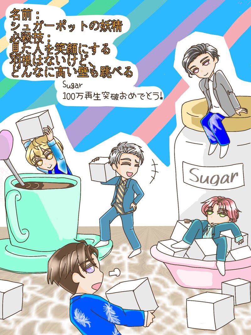 SugarのMVで、ポップな配色の大きな食器を見て小人じゅねす→シュガーポットの妖精になったもの