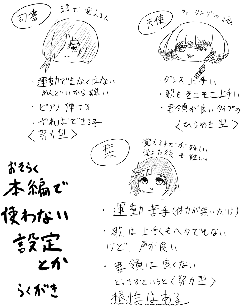 myanoshifinal☆quiet followDOODLEもはや裏設定に近い或る書架3人のなにか要約すると↓のような感じ天使→好きなことは伸びるけど嫌いなものは❌司書→効率厨栞→いっぱいがんばる子 #創作 creation ##或る書架 Tap to full screen (size:1200x1500).Repost is prohibited Let's send reactions! freqpopularsnackothersPayment processing Replies from the creator Follow creator you care about!☆quiet follow myanoshifinalDOODLE【※アナログ注意※】『今際』バグ修正の途中で急にお絵描きしたくなったゆえの産物です、、、見やすさの為、ちょっと加工かけてます。 myanoshifinalPAST【再掲】TLだとどうしても流れてしまうので、ここにキャラ紹介を再掲します。1枚目が概要で2〜4枚目は個別のプロフィールになってますが、基本そんなに内容は変わらないと思います…多分色んなタグやツイで私の創作を知っていただいた時、あわよくばキャラに興味を持って貰えたら、という気持ちもあってここに再び貼らせて頂きました!キャラを知っていただいているフォロワー様たちには多大なる感謝を…🙏✨ 4 myanoshifinalDOODLE2021年の天使の日(10/4)に出そうとした何か最後の司書のセリフが語弊がありそう&汚すぎ等々の理由でひよってしまったものの供養チキンなので蛇足するのですが、司書が「しょうもな」と言ってるのは天使の渾身(笑)のギャグに対してなので、決して天使の日をバカにしているわけじゃないんですホントマジで(土下座) 3 myanoshifinalDOODLEもはや裏設定に近い或る書架3人のなにか要約すると↓のような感じ天使→好きなことは伸びるけど嫌いなものは❌司書→効率厨栞→いっぱいがんばる子 myanoshifinalMOURNINGツイートしたやつの差分です。大したことなさ過ぎたのでセリフ入れましたが、それでもほぼなんも変わりませんでした黙祷🙏 2 myanoshifinalDOODLE※雑・手書き文字注意創作「献花」の他2人。従兄弟同士だが関係はブリザード級に冷めてる。が、澪は興味本位と言いつつ桐也に意地でも絡み、遥人は盲目の勢いで那月に心酔してたりして、どことなく似たようなことをしている。 2 related works _caccotojiDONE🌿 宙兎帆羽PASTヘッダーのヤツ #創作 #オリキャラ かえでDOODLE amejiyaPAST創作曲ネタ絵 15 ねねこDONEテスト的なアレ的なアレ特に深い意味はない#創作 若松ハルキ/春樹DOODLE #アナログ #創作ネズミさんとネズミちゃん。 小雀黎DONE結局青くしました。青が似合う。簡単な塗りにしてみたけど、合う合わないは分からない…… みなせDOODLEお試し登録です。いい感じなら続けて利用したいと思います。 はしくんMAIKING初めてiPad Proで絵を試し書きまだ慣れないし疲れたので途中放置…。