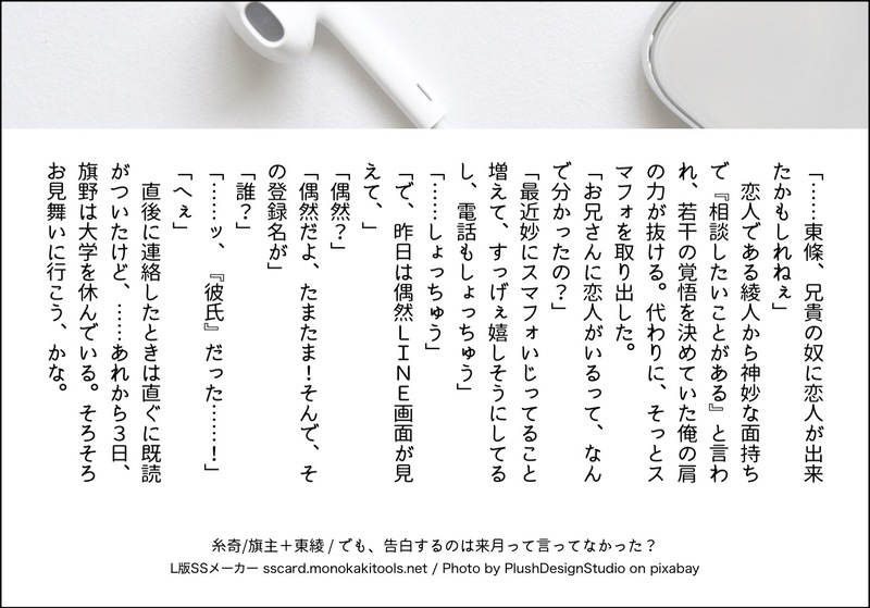 どっちかっていうと弟主人公の方がそういうことしそうだなって思ったんだけど、スマフォ覗き見を兄綾人がしたらちょっと怖いなって思って、……思って……。