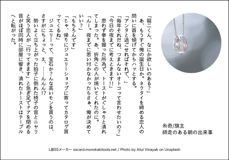 com_8Ta_☆quiet followDONE【旗主】師走のある朝の出来事※L版SS※成立if※社会人×社会人「今日一日なにも手につかねぇんですけど!」旗野龍二くん、誕生日おめでとう!!!当日の話じゃないけど、誕生日おめでとうSSだと言い張る。 #旗主 flagMaster Tap to full screen (size:1365x954).Repost is prohibited Let's send reactions! freqpopularsnackothersPayment processing Replies from the creator Follow creator you care about!☆quiet follow com_8Ta_DONE※成立if※社会人×大学生※東綾成立済リクエストの『旗主成立を知った綾人目線』のお話でした。ちょっとブラコン寄りの綾人といつメンが宅飲みしてます。知った×察した○になってしまった感はありますが、高校生組を書けて楽しかったです。北寄りに住んでいるので、関西弁は勉強させてください…。間違いがあれば、こっそり教えてもらえると助かります。リクエストありがとうございました! 4881 com_8Ta_DONE※成立if※同棲済みリクエストから頂いた『同棲済の旗主で旗野くんの手料理は良いんだけど、量が少なく裏でこっそりカップ麺を食べていて、それを恥ずかしくて言えないお兄さん』のお話です。お兄さんがあんまり恥ずかしがってなくて申し訳ないですが、ほのぼのは書いていて楽しかったです。リクエストありがとうございました! 2994 com_8Ta_DONE【旗主】気付かされ回だったとか、そんな。※L版SS※未成立未成立をあまり書いてないので、ちょっと加減が分かりませんでした。未成立です、多分。旗野くんの初恋はお兄さんだけど、『初恋は叶わない』的な迷信?を聞いた旗野くんが「初恋は幼稚園の先生だったから!!やっぱり嘘です!!アンタです!!」って叫んで一瞬だけ初恋の相手じゃなくなる。 com_8Ta_DONE【旗主】王道BL漫画展開を踏まない男※L版SS※成立if旗野くんは王道展開に振り切る時もあれば全力逆走も有り得る男なので、お兄さんの柔軟な対応力が試される。多分この後は仲良く一緒に風呂に入って一緒に寝た。すや。 com_8Ta_DONE【東綾+旗主】愛の数だけハイネックが増えていく※L版SS※原作軸数年後東綾ってそういうことシてるイメージがないんですけど、して欲しいなって思ってます。素直。でも綾人は「男同士でできるわけねぇ」って思って、そういうこと考えたこともなさそう。兄を見習って。東條くんにはいつまでも旗野くんの相談役でいてください。 com_8Ta_DONE【旗主】ガラスの靴や毒林檎がなくっても※L版SS※絶G※成立if旗野♀ちゃんは白馬に乗った王子様じゃないけど、誰よりもお姉さんをお姫様にしてくれる。 related works Tesyes927DONEBLダブルスタンダード:普段は口調が優しい年上受けがセックスのときに余裕なくして口調が荒くなるのいいですよねっつ~~~話です旗主スケベ1ですあと3枚続く予定で~~~すエロは清書しない方がエロい鮮度を保ってる気がするんでマーカーのままで失礼しますパス:あなたは18歳以上ですか? y/n kataharakkiDONE私だけが楽しい同棲旗主日常㉑【後編】 R18 旗野くんが主人公の乳首弄ってるだけpassあなたは18歳以上ですか? kataharakkiDONE私だけが楽しい同棲旗主日常㉞「今日だけは好きにしていいって言ったのアンタじゃないスか」 pika_pikaidolDONE旗主 小説 IFの三年後 くっつく話 事後描写あり 8 kataharakkiDOODLE私だけが楽しい同棲旗主日常の落書きフォロワーに送った落書きです3枚の絵を箱開けた瞬間、真ん中、底の順に入れて笑って貰いたかったの 3 com_8Ta_DONE【旗主】後にも先にもアンタだけです※L版SS※成立if※大学生×社会人前作『その笑顔こそ動画で撮りたかった』のこんなのも考えましたがver.タイトルは是非クソデカボイスで再生してください。 kataharakkiDONE私だけが楽しい付き合ってる旗主大学生×社会人フォロワーの誕プレに描いた漫画です龍二のイキ顔が描きたかっただけ ray_hekiDOODLE旗主 5巻メイト特典その後の妄想Ⅱ ペン入れver.主の笑顔も旗くんの赤面も描いて満足です 2 ビバビーバーDOODLE仕返し recommended works tanoDOODLE真夏のU◯Jデートイチ若続き。若の写真フォルダ。 のしのしDONE旗主オンリーラブはや展示作品②ホワイトデーのアクスタのはなしふたコマ頑張った、どれかわかるかな?※バレンタインとつながってない※大学生組が受け側自認してそうな話してる※カラーで文字多くて読みづらい1コマ目頭切れてた、すいません。内容は支障ないです・・がそう言う話ではないか。 2 ray_hekiDOODLE旗主 5巻メイト特典その後の妄想Ⅱ ペン入れver.主の笑顔も旗くんの赤面も描いて満足です 2 com_8Ta_DONE【旗主】いや、君がなるんか。※L版SS※成立if此方もリクエストで頂いた『あちあちおでんを食べるはたしゅ』でした!一人まだ食べてないね。先にこっちのネタの方が浮かんだんだけど、書き始めたら長くてSSに収まらなかったから一度断念。でも諦め切れなくて、めっちゃ削って書き直しした。語彙力が欲しい。 com_8Ta_DONE【銀蛮】正直に答えたら、真っ赤な顔で殴られた※L版SS※両片想い(無自覚×自覚有)銀次には純粋無垢な顔で「蛮ちゃんが美味しそうに見えるの、なんでかなぁ?」っ