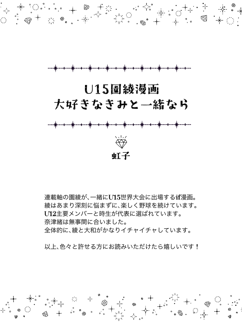 にじこ☆quiet followDONEU15園綾まとめ前編『大好きなきみと一緒なら』ツイッター&ポイピクに掲載していたシリーズ漫画を、一気読みできるようにまとめました。こちらは前半です。 show all(+18 images) Tap to full screen (size:1267x1687).Repost is prohibited Let's send reactions! freqpopularsnackothersPayment processing Replies from the creator Follow creator you care about!☆quiet follow にじこDONE💎罪第90話感想絵『鵲(かささぎ)の橋』橋の上で出逢う、七夕の織姫と彦星のような二人。 にじこDONE💎罪89話感想絵。『First drive date』親の車(ベ◯ツ)を借りて初めてのドライブデートに出掛ける園綾。高卒プロ1年目の免許取り立て若葉大和です。89話と内容全然関係ないですけど、車のシーンなんだか不穏で悲しい場面ばかりなので、車の中でイチャイチャしてる二人が見たくて描きました🥹 にじこDONE💎罪第88話感想絵『麒麟児』小さい大和、たしかにファジカル面では最底辺なんだろうけど、発想力や創意工夫力は同世代でもずば抜けており、『西の麒麟児』の名に相応しいなぁと思いました。 にじこDOODLE💎罪第87話園綾感想絵『結婚報告会見』。末長くお幸せに💚🩵 2 にじこDONE園綾オメガバース6『家族写真編』α大和とΩ綾の間に生まれた忘れ形見の息子くんがメインの、ゴスラ+ゴスバ軸プロif漫画。オリキャラ主人公ものです。じょじょに父性愛が芽生えてきた大和のお話。 5 にじこDONE園綾オメガバース5『パパの結婚編』α大和とΩ綾の間に生まれた忘れ形見の息子くんがメインの、ゴスラ+ゴスバ軸プロif漫画。オリキャラ主人公ものです。※綾さんとモブ女の結婚の話題が出てきますが、園綾ですのでご安心ください。 5 recommended works -木黛-DOODLE狗 2 サメ子DOODLE玩具責めナージク+エレライpass 18↑?yes/no 2 xiangbuchuMAIKING🥰🥰🥰🥰 アココチャンDOODLE逆サンタ🎅 BmBunny0w0DOODLE18?y/n? 2 はるはらPROGRESSSkebラフ つきしまDONE【共に在りし火日 】第1部つれづれ⬛︎大正軸生存if⬛︎全年齢生存ifですが戦いが全て終わったあとのお話です。 27 POI10936457DOODLE🪔𝖶𝖤𝖫𝖢𝖮𝖬𝖤 𝖳𝖮 DADA 365 BOOKwww.dada365.now #IPL2025 #dada365 #dada365news #virat #cricketindia #csk #klrahul #bigbashleague #testcricket #cricketers #hardikpandya #dream #cricketworldcup MAD_suki_2DONEお題:腋〇キ NEO(↑18yes?)