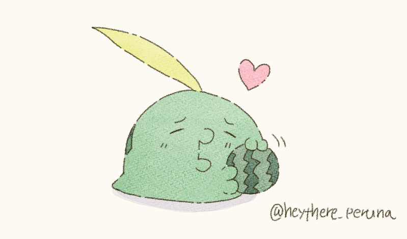 小玉スイカを愛でるもっち。
