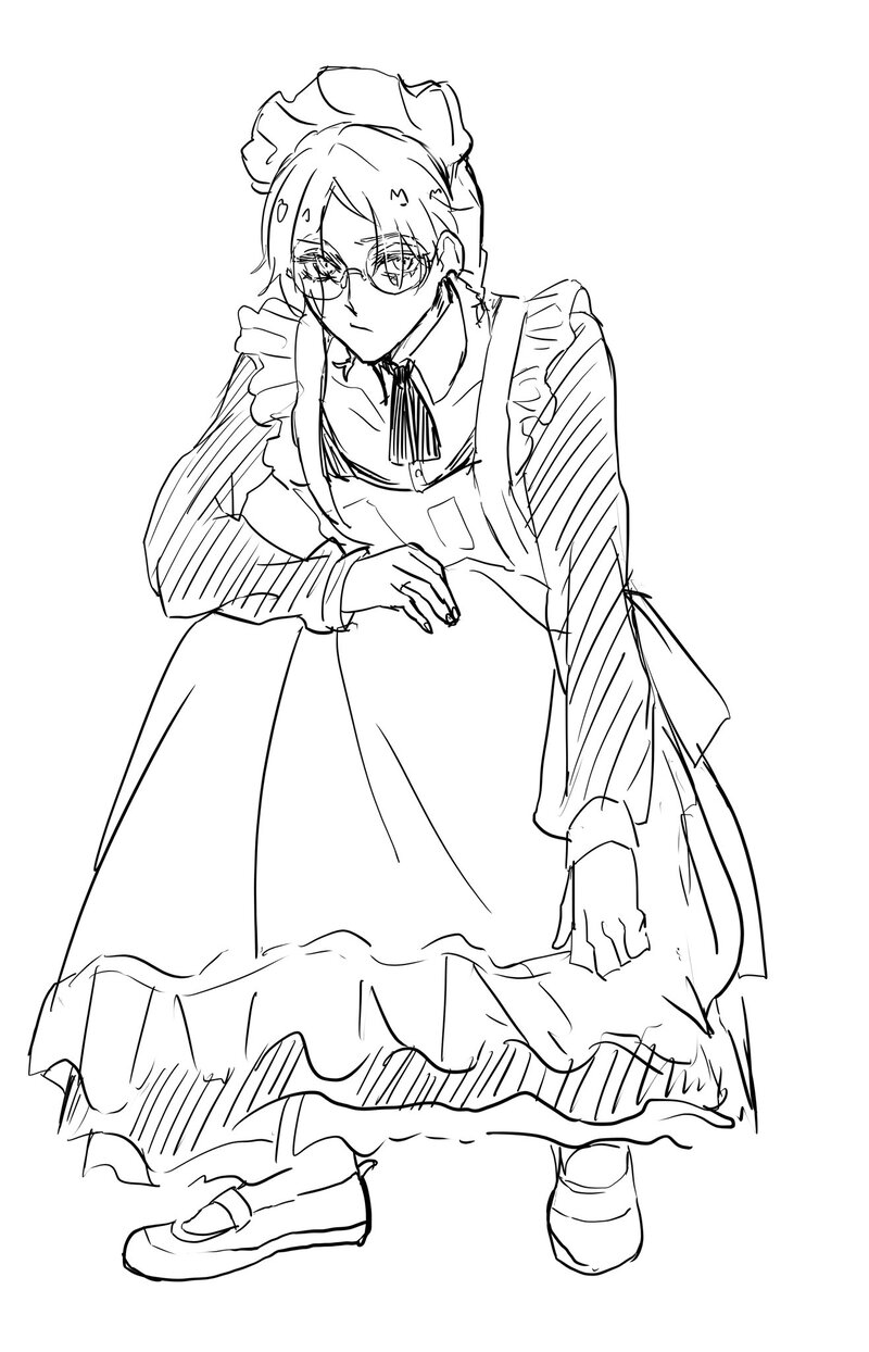 中学時代に少しバイトしてたメイド喫茶の制服(返り血付き)を意気揚々と着てたら、とある2年に「そのメイド服だとハーフパンツ見えてますよ」と言われ無理やり綺麗なメイド服着せられご機嫌ななめ怜二くん。てめえの血をよこせと真顔で追いかけてくる。三つ編みも2年にやられた。上履きは普段から履いてるやつ。