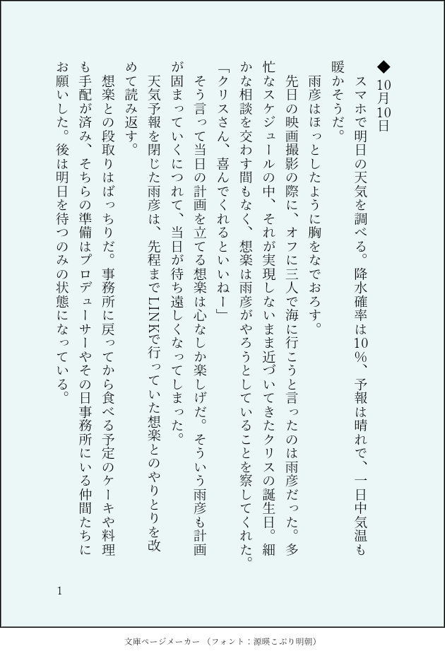 hagi_pf☆quiet followDOODLE本垢にあげてたクリスさんの誕生日前夜の雨彦さんのSS(特にCP要素はない) show all(+1 images) Tap to full screen (size:630x928).Repost is prohibited Let's send reactions! freqpopularsnackothersPayment processing Replies from the creator Follow creator you care about!☆quiet follow hagi_pfDOODLEクリスさんのトライアスロンをテレビで見守る北村くんとなぜそこにいるのかわからない雨彦さんの話。※雨クリは多分付き合っている 2548 hagi_pfDONE雨クリWEBオンリーの展示③ですイチャイチャピロートークしてるだけの雨クリ。※全年齢の内容ですが事後です 2150 hagi_pfDONE飲み会で酔ってしまったクリスさんを家に連れ帰ってきた雨彦の短い話。※クリスさんが雨彦を可愛がってます 1978 hagi_pfDOODLE1年のまとめ作ってたら春に書いて放置してたお掃除ネタ?雨クリが出てきたので、急ぎ大掃除ネタに手直しして書き納めとします彦が論さんのことめちゃ好き〜って感じのいつもの同棲してる雨クリです 2249 hagi_pfDOODLEクリスさんがお疲れの雨彦を甘やかす雨クリ。※ナチュラル同棲&雨彦がべろべろに甘やかされまくってるので注意 2532 hagi_pfDOODLEクリスさんがふとした瞬間に雨彦からの好意と自分の恋心に気づいて5分で付き合う超展開の雨クリ。雨彦はクリスさんが言うだけ言って満足しそうだったから秒で覚悟を決めました。 3100