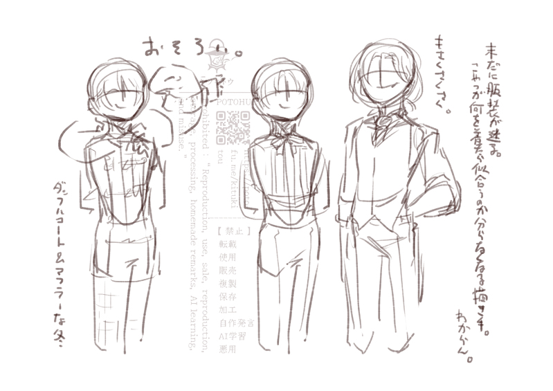 「(藤ばかり描いているから)描いてる人がこやつの可能性を掴み切れていない」のでならくがき(+昔描いたみに)。未だ掴めている気がしない(気持ち「ふじ!いっぱいおしゃれしてくれ!」が先行している)。