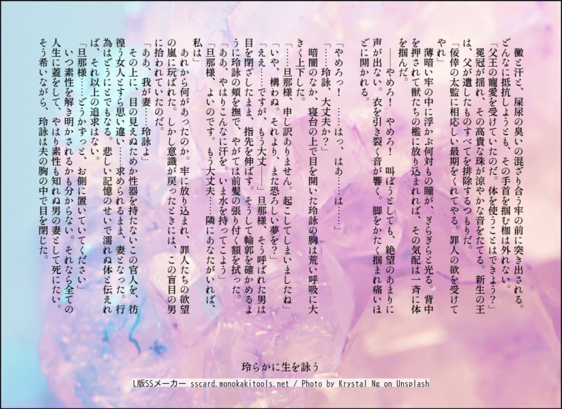 twilight_topaz☆quiet followMEMO先王に寵愛されていた宦官のその後的な。このあとも色々波乱の人生になりそう。 #小説 novel #創作BL Original Bl #宦官 eunuchs #中華風 chineseStyle Tap to full screen (size:1365x994).Repost is prohibited Let's send reactions! freqpopularsnackothersPayment processing Replies from the creator Follow creator you care about!☆quiet follow twilight_topazDONE性癖パネルトラップログ1:攻めのちくび責め 玖路×汐音2:アニ●ングス ラッシュ×ムース@なっきー様3:受けのちくび責め 是愛×耶雉4:受けの玉責め 夕陽×千蔭@白湯すい様5:攻めの会陰責め 西郷×源@左田ナギ様6:顔面騎乗 薫×勇人@引田ロング様7:攻めの連続絶頂 赤伯×青明8:舌フェラ 主計×純名お付き合いありがとうございました! 8 twilight_topazDONE愛し君よ、螺鈿の光を指先にのせ / ヒース×レオ(青年期)いまりさんご本人にリクエストをいただきました。ご要望により転載しております。 4510 twilight_topazTRAININGムラムラ是愛(ポイントは念仏をとなえるところ) twilight_topazMOURNINGずいぶん前にお借りした「えっちな表情テンプレ」ここの存在思い出したので上げてみます☺創作BL『わたしのお父さん』より耶雉で書きました twilight_topazMOURNING【ガラスの靴はいらない】童話風BLで真っ直ぐな少年×好色な靴屋さん 3 twilight_topazTIREDお題で書き始めた東方の青年と西方の若き王 少し情けない感じの王様と、賓客として招かれた青年って感じでしょうか……まだ左右も決めかねています、どっちでもいいかな 8 related works 3kroman2PAST王様と黒騎士の二人セットに入れ忘れた絵。眠り続ける王様の見る夢。#創作BL #オリジナル 兎守 優(旧:内山)DONE人間嫌いな特殊捜査員の吸血鬼×崖っぷちな搾取される贄刑事 捜査協力の対価は、血液の供給。この男の不可思議な魅力に当てられ、刑事は次第に、彼に全てを捧げていくのだが。 24345 BLのにしなPROGRESS受君の雄っぱいが上手く描けたから報告です!3pでモブに回されている幸の薄いうちの創作男子君。いつ幸せにしてくれるんだと、苦情の嵐をフォロワーさんから受けていますが、まだ地獄の中です。頑張って幸せにする次第です。 2 たかすんDOODLE ななめDONE過保護なアキラによって、もこもこにされるマサ。 3kroman2PAST王様と黒騎士。二人が一緒の絵中心。#創作BL #オリジナル 3 たかすんDOODLE昔描いたやつ linco_akutaDOODLEとりあえず 3kroman2PAST王様と黒騎士、キャラ単体絵色々。#創作BL #オリジナル 4 recommended works うすみずPROGRESS先生 すいそうPASTきょーひな穏優(植村兄弟)けいかな 10 うすみずDONEA5(A4二つ折り)で試しに刷ってみたら絵がちっさかったので、ごまかし気味に組み直してみた。10/6の表紙はこれになると思います。前にあげたやつはポスターにでもしようかな うすみずPROGRESS16p/88p 4時起きPROGRESS【創作BL】前にもあげたページですがこんなかんじ!あとは文字入れ。 ありす(元うさ実、マネキネコ)DOODLE眠ってしまった君のメガネを外してそっと顔を見る内緒の想い夕陽の中の同級生BLです…🌇 ななめDONE5月9日はアイスの日。というわけでアイスの話を描こうと思ったんですが、主題がズレて間接キスの話になってしまった。広瀬はちょっと理屈っぽくて、ちょっと潔癖症です。入江の方が能天気。広瀬は、最初はおそるおそる入江の食べかけを口にしたのでは、と思うのですが、意外と平気だな?むしろ楽しいな?みたいな心境の変化があったと思います(このアイスの話よりも前に)。(2022.05.09) 2 4時起きDONE【創作BL】絵かいた。 有村千代DONE表紙イラストクールな年下男子は、俺の生徒で理想のお嫁さん!?https://lit.link/tiyoarimura3