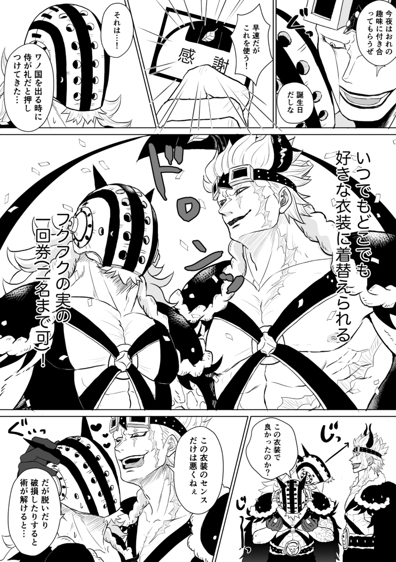 徒然置き場☆quiet followDONE遅くなりましたがキッドくんおたおめなキドキラ漫画です。ワノ国後の捏造設定です。キラーのマスクは金属製で素顔も捏造してます。百獣海賊団の衣装が好きすぎたので2人に来てもらうことに必死でお誕生日感あまりありませんが…。今年も沢山活躍しますように! #キドキラ kidkiller ##キドキラ show all(+2 images) Tap to full screen .Repost is prohibited Let's send reactions! freqpopularsnackothersPayment processing Replies from the creator Follow creator you care about!☆quiet follow 徒然置き場MOURNING絶対残ってないと思ってたミリ環のデータを発掘して嬉しかったので載せます。4.5枚目は環の蛇舌ネタで少しマニアックなキスの描写があるのでワンクッションおいてます。hrak終わってしまって寂しいけど本当に本当に最高の最終回でずっと反芻してます…アニメも障子くんと口田くんのところ熱くて泣きました。 5 徒然置き場DOODLE遂にキラムギが出る!!!!!嬉しい!!待ってた!!週末はキドキラムギを捕獲しに行ってきます。本当に待ち望んでいたので…嬉しい…早く裏面も見たい…今日(R5/6/25)のアニワンも、冒頭のキッドくんの走馬灯(?)の多くがキッド海賊団で占められていて泣きそうになりました。あの一枚絵たちをクリアファイルとかにして売ってください…。キッド海賊団が好きです😭 徒然置き場PROGRESSアニワンのキラーvsホ様に興奮していたのも束の間…!本誌…!本誌の展開が…!!キッド海賊団が好きなので描きかけの漫画を細々書きながら待ってます。。。推したちの涙が刺さる……。みんながいるコマを急遽仕上げて貼り付けてみましたが次は全く関係ない話を完成させます。本誌ショックでメンタルがぐへぇ…としてたのですが、ぽちぽちスタンプ押していただけて元気出ました。ありがとうございます! 徒然置き場PASTキラーさんお誕生日おめでとうございます!載せたのは全然関係ないキドキラとワイヒトのぬい漫画再掲です。キラーさんのアイドルみたいなアクスタが出て可愛くて嬉しい〜!風船がマスク柄なの最高ですね。あれ見ておれ(キラー/キラーさんの)マスクの柄と合わせてある…って自他共に思う瞬間があると思うと元気になる〜。この勢いでキラぬいも出ますように🙏キラーさんが健やかで健やかな一年を過ごせますように本当に 2 徒然置き場DOODLEアニワンで突然ヒートくんが出てきてウワーーッ!ってなった勢いのらくがきです。ワイヒト成分があります。ちょっとピンチな感じがまた最高でした…ありがとう親分……✨二枚目は卯年だからウサギ耳ワイヤーさん描いたら圧の強いマイ◯ロになりました。 2 徒然置き場DONE明けましておめでとうございます〜!キッドくんの誕生日目前ですが、12/1誕生日だったヒートくんのお祝い漫画です。今年もマイペースにキドキラやワイヒトやキッド海賊団のわちゃわちゃっとした漫画を描いていきたいです。今年もよろしくお願いします〜!本誌の展開が怖い😭キッド海賊団健やかでいて…… related works わたさくDOODLE nnnnnnoodderaDONE【腐向け】チャバが酔ってハ崎さんに甘えてる漫画。ハ崎さんがトイレに行くのを我慢していたりする。 4 べこDOODLEピンク色のバレンタインなヨウグズ🍫 ちゃづDONE描いたやつその1※茨あん、ジュンあん 17 きくちゃんDOODLEサタン様犬好きかと思いきやロクサーンみたいなパターンもあるのでやっぱ人外思考なのかな~ 2watoyoDOODLE【朝のボールペン落書き】【日楠♀】【先天性女体化】日高先輩×男装後輩サキュバス家系楠ちゃん。海編。本当に気にしてるのは。 ココノカSPOILER幻覚なので全くネタバレではないけど1072話の発言ネタ ちゃづDONE描いたやつその1※茨あん、ジュンあん 17 きくちゃんDOODLEサタン様犬好きかと思いきやロクサーンみたいなパターンもあるのでやっぱ人外思考なのかな~ recommended works うお@壁打ちCAN’T MAKE推しの顔が良すぎて練習しても描けね〜〜〜〜〜〜〜〜〜〜 徒然置き場PAST突然謎のクイズに巻き込まれるキッド海賊団の皆さん。キドキラです。 konbusan6DOODLE🥗🌐ちゃんが描きたくなったので描いたよ! 2 徒然置き場DONEブラックマリア姉さんに捕まったキドキラです。ブラマリ姉さんの本誌ネタバレがあるのでワンクッション。シリアスじゃないです。 徒然置き場DONEすごく謎設定の2020描き納めです。opのある世界に転生した記憶のない🌷と🌐が付き合ってて、それぞれ🌷→キラー強火ファン、🌐→キッド強火ファンな設定です。本当に謎…。転生して記憶がなくてもお互いに惹かれる気持ちが根強く残っていてほしいのと、来年こそキラーと鎌ぞうのフィギュアも欲しいーー!!ご活躍期待しております!という想いを込めました。来年も宜しくお願いします☺️ 2 徒然置き場DONE遅くなりましたが2月2日キラーさんお誕生日おめでとうございました!!ご活躍楽しみにしてます怪我しないで元気で美味しいもの食べてほしい😭今年はカラー一枚絵も練習していきたいなと思います。薄目で見てください🙏早速塗りミス見つけたので修正版です