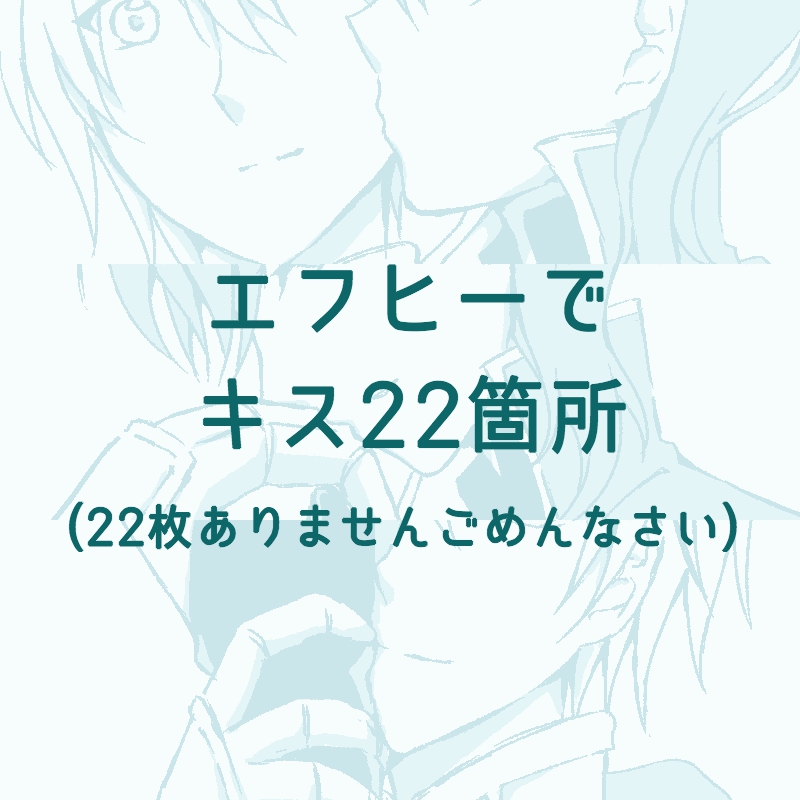 エフヒーでキス22箇所です………が、22箇所間に合ってません!!!ので描き終えた分だけ置いてあります(当日中に増える可能性あり)。