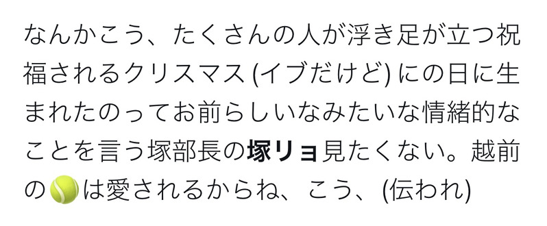 ポエム塚リョ(越前誕、遅刻みたいな感じだけど24日から約81,600秒しか過ぎてないのでセーフ)