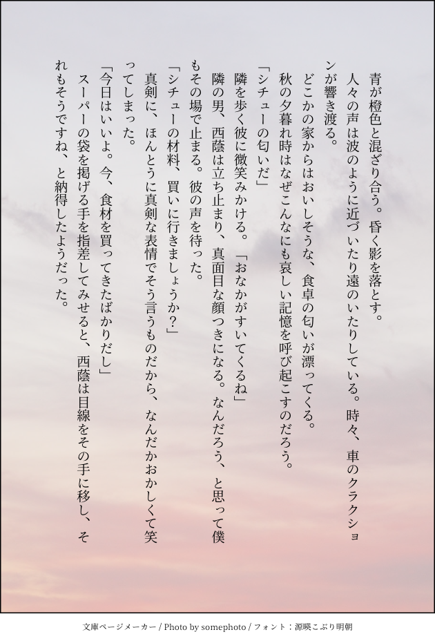 宇都木楓☆quiet followDONE秋の夕方と政悠。一応同棲してる設定なので成人してると思います。 show all(+1 images) Tap to full screen (size:630x928).Repost is prohibited Let's send reactions! freqpopularsnackothersPayment processing Replies from the creator Follow creator you care about!☆quiet follow 宇都木楓DONEありさあや。推しカプになりました……尊いです……最近はじめたばかりなのでストーリーなどもっと読み進めて深めたいです💪 3 宇都木楓DONE秋の夕方と政悠。一応同棲してる設定なので成人してると思います。 2 宇都木楓DONEはじめて書いた政悠を文庫ページメーカーに移した?ものです。この時はこういう展開しか思い浮かばなかったですね……今は色々な政悠が書けて嬉しいです。 6 宇都木楓DONE走榊。今年の書き初めです。原作小説読んだらアニメの追加シーンがすごくイイ……って感激したので!!そのあたりのシーンから!! 2 宇都木楓DONEのさかさんに宗教しているにしかげの政悠です。 宇都木楓MOURNINGユキ神。初めて書きましたこのふたり…色々ゆるして。(すぐゆるしを求める) 2 recommended works umashiDOODLEしづくれしづかの実家ゴミ屋敷であってほしい 2 oUnugxjj2JDOODLE千ゲ 一応背後注意 3 とうらくDOODLE実は猫の日に描いてたらくがき…挟まれながらお昼寝したい欲…🐱💤 ____0029xxSPOILER同居人 げんみ❌ 両生還記念エンドカード(落書き)pass→y 3 To2!!!!DOODLEテンプレアサルト・シャム・ヨルガ・サギオ・伯楽 22 Kowa_guchi_kINFOCoC『旅館の捕食者』KP:小和口PL:HO1 - わかめ / 甘原 狸奴HO2 - ねねこ / 犬伏 一壱HO3 - ャ / 鸛崎 明澄▶エンド1 全生還 KUSIDA_ngoDOODLEたiちばiなiさん⚠️女装 バニー 口とかになんかある一応🔞成人済みかどうか たまぞうDONE🌟🎈で、魔法が使える人間と使えない人間のお話🔞(軽く死を匂わすような表現あります)パスワードは鍵垢にあります。ハッピーではありません。 3753 kappamDONEウィルアルハグポーズはラブシーンデッサン集見ながら描きました〜