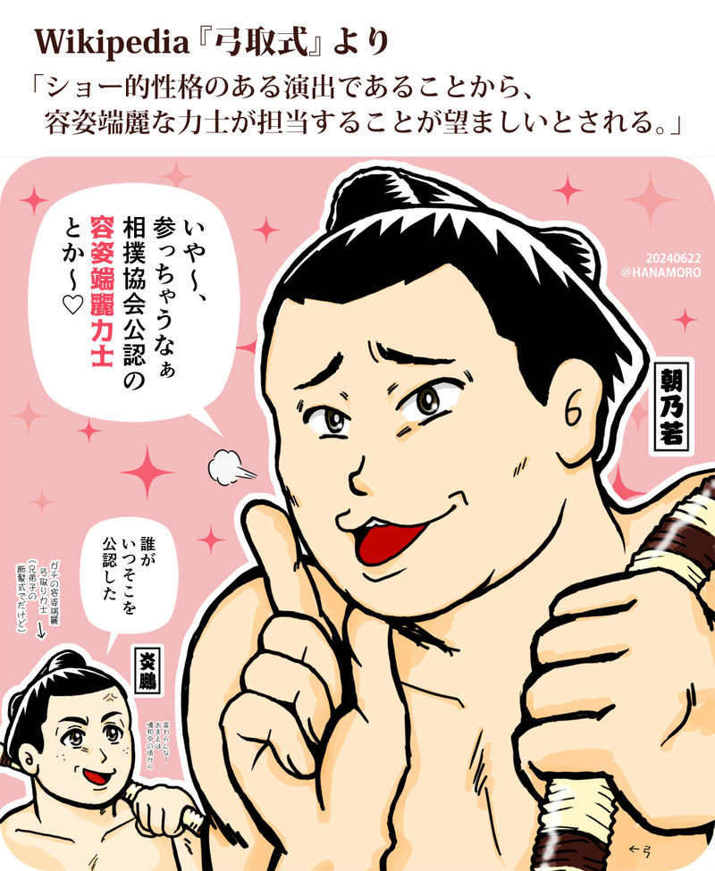 ハナモ @HANAMORO 2021年初夏の入院中、おすもう絵を1日1枚ずつFleetに載せてたら結構たまったのでおすもう絵置き場を作りました。無精者なのでその後も増えてたら褒めて下さい ☆quiet follow POIPOI 90