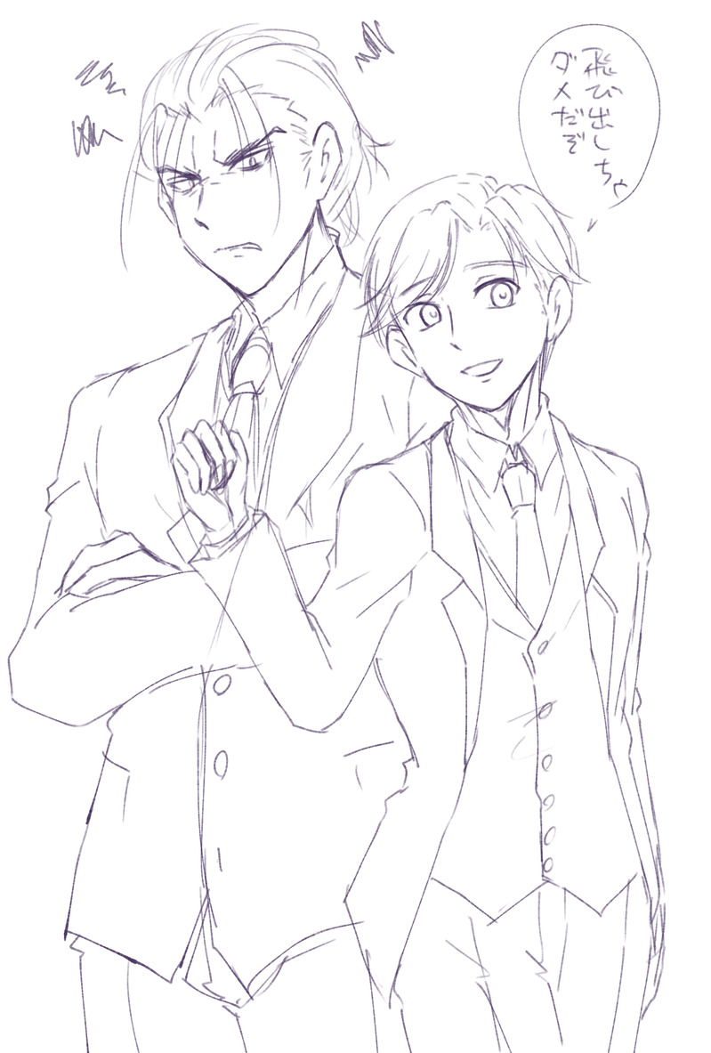 従者アロ×主人ルクで潜入捜査するみたいなん描きたかった。が、間に合わなそうなんで下書きだけでも置いておくよ。