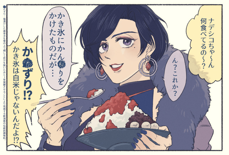 ナデシコさんお誕生日おめでとうございます!たくさん美味しいもの食べてください。(話してる相手はモクマ/ゴンゾウ/スイ/ルーク)