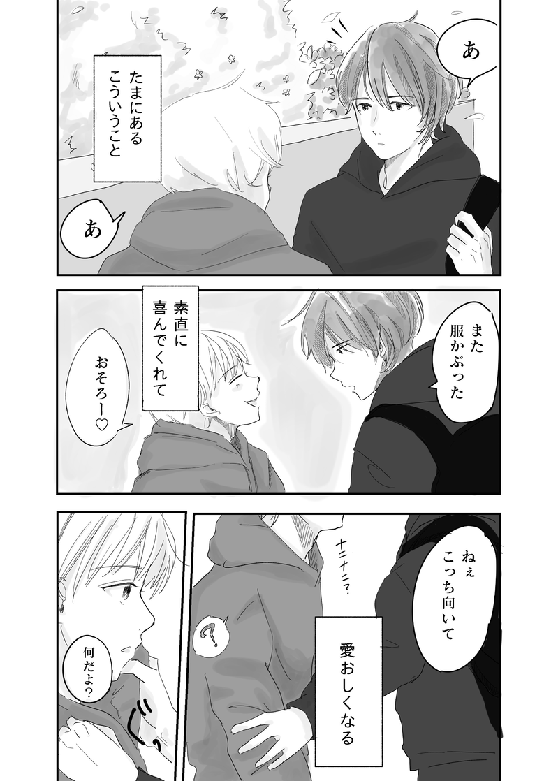 お湯良☆quiet followTRAINING幼なじみが昔から挨拶がわりにチュッってしていたら、恋人未満で歯止めが効かなくなりそうな前ぶれ。 #コータと和央 kotaAndKazuo #創作BL Original Bl #bl show all(+3 images) Tap to full screen (size:2591x3624).Repost is prohibited Let's send reactions! freqpopularsnackothersPayment processing Replies from the creator Follow creator you care about!☆quiet follow お湯良TRAININGコータのtkb初めて描いた&色塗ったかもしれない… 2 お湯良DOODLEアキと萩 2 お湯良MOURNINGボツネーム✒️2人はこんなことしないだろって思ったので🙄(コータはしたいんだろうけど…) 2 お湯良TRAININGいつもどこか不安なコータ。たぶん同じくらい和央も不安だと思う。イベント終わったらなんか色々描けなくて、このあとに続く不穏な回の伏線みたいな話を練習で。 7 お湯良DOODLE受と受がイチャイチャしてるだけ 2 お湯良DOODLE独り占めしたいってお互いに思ってる related works お湯良DOODLE方言に憧れる お湯良DONEキスの日に描いたやつ♡ お湯良DOODLEいつまでも幸せでいてほしい お湯良DONEショタ可愛い お湯良DOODLE髪の毛長めで結んでるの最高 お湯良DOODLE和央がコータのこと好きすぎるんだなって、いつも思う。 お湯良DOODLEすき好き大好きーーーー! お湯良MEMO両片思いってやつ 4 お湯良TRAINING好きな人が寝ていたらどうする?とりあえず、やりたいことやってみたら相手の方が一枚上手だったという話 8 recommended works いちおかしPAST狼ゲームキャラ化タグ、壱伍イチちゃん!要素をくれた皆さんありがとうございます! 2 糸泉 点DOODLEバレンタインらくがきと、そこそこ最近のらくがきの詰め合わせです。だめな方見ちゃうとあれなんで一応のタグすみません… 10 しいたマ_創作物をお届けDOODLE【創作BL】溺愛N/Aより。キス動画(笑)顔をスライドさせただけだけど。こんなのもできるかなぁ。試しにアップしてみる。 しいたマ_創作物をお届けDOODLE【N/Aのうわさ31~35】ツイッターでやってる創作BLの小ネタ落書きです。5枚たまったら載せています。今回は保健室の先生とのたわむれ編です。悩める姉屋、かと思えば切り替え早い姉屋、やつはAB型で、きっとこんな感じだろう。 5 とぅっしぃ@有償依頼募集中DONEアリシアさんおめですーTwitter→https://twitter.com/toushiiiiiiニコニココミュ→https://t.co/vIeIIxow8A jun2900DOODLEいろいろ練習にラクガキ わかめサロンパスDOODLEモーニングスターを持つ僧侶 🍓夢川もえぴ🍼PAST高校生の頃のスケッチブックがでてきたから、可愛くかけてた落書きをもったいないので晒すฅ•ω•ฅ 10 銀夏@richie_wassonPROGRESSオリジナル創作BL、続き。新キャラ登場の巻。溺れる人魚(16)#オリジナル創作BL#創作BL#BL 7