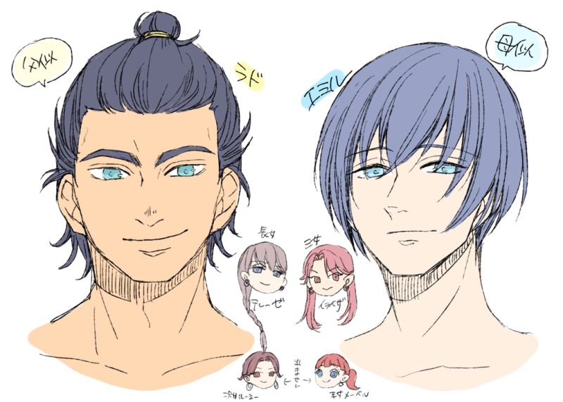ラド&エミル兄弟のキャラデザ描き直し。イライザ姉ちゃんは昨日投稿したのと変わりません。