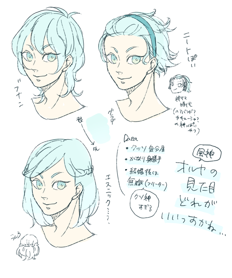 神様は大体見た目もうイメージできてるんですが、オルヤだけ定まらんのです…たすけて…たすけて…。