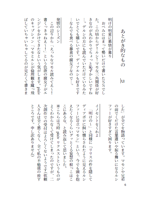 ii29_basashi☆quiet followMOURNING2022/6/12オンリーイベント新刊のあとがき(無配)でした show all(+5 images) Tap to full screen (size:588x825).Repost is prohibited Let's send reactions! freqpopularsnackothersPayment processing Replies from the creator Follow creator you care about!☆quiet follow ii29_basashiMOURNING2022/6/12オンリーイベント新刊のあとがき(無配)でした 6 ii29_basashiDONEほんの少しだけ新刊先読み 2 ii29_basashiTRAINING元兄弟サンドイッチR18 おかわり! 793 ii29_basashiDONEしめぴと長男の元兄弟サンドイッチ続き 18歳以上の方のみでお願いします 2286 ii29_basashiMEMOご無沙汰だったマモルシ #obmbl 815 ii29_basashiMEMO前にツイートした「寒くてマモルシがいちゃいちゃくっついてたらパパラッチされたもののルシファーが出版社にカチコミして画像を削除し待機してたマモンの愛車ちゃんで颯爽と館に帰っていく二人」メモ 486 recommended works はむたまDOODLEあなたが知っていること 知らないこと2024/7/7開催のアナザートランスフォーメーションの展示漫画です。トランスフォーマーアドベンチャーのサイドスワイプとバンブルビーのお話です。少しオプティマスも…全部知ることはできないけど、知っていることが増えたらうれしい…そんなお話です!読みに来てくれてありがとうございます…! 8 くコ:≡DOODLE工藤の日を記念して描きました㊗️下ネタです!!!!!羅漢と一来の漫画2本です。3ページからは高校生羅漢と小学生一来の漫画になります。DK羅漢はビジュアルわからないので現在より気持ち髪が若干短めです。 4 JoYuanDOODLE 补药再解擦了DOODLE 5 ぎうにうぷりんPROGRESSリリア誕絵進捗 リサミDOODLEhyuluka nsfw drop !! very sketchy pure horny vibespasword is the answer to: are you over 18? 18 yukiamano77SPOILER野狗子と薬師 現未×Merry Christmas!お題箱の分です🎁 3 luzuoziDONE 2 sappa_trpgINFOそうだ、キョウトとやらへ行こう。KP / KPC:さっぱ / Felix Schrader ReedPL / PC:ささみちゃん / Alora Barnesえのちゃん / Shear Arden三島さん / Matthew Long