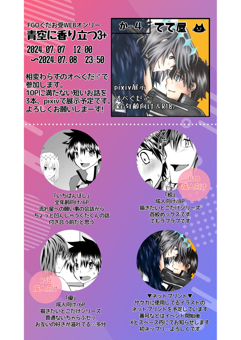 2024.07.07開催のFGOぐだお受WEBオンリーにオベぐだ♂で参加します。