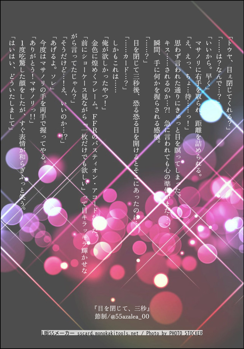 節 制☆quiet followDONE(文字見づらくてすみません…!!)付き合ってる前提。トウヤが勘違いして1人で慌てて赤面してたら可愛い。マサノリは普通にカードあげようとしたけどトウヤが勝手に勘違いしてきたから内心「可愛い~」と思ってたら良いしニヤニヤしている。お題メーカーさんから借りました!貴方はマサトウで『目を閉じて、三秒』をお題にして140文字SSを書いてください。shindanmaker.com/375517 Tap to full screen (size:954x1365).Repost is prohibited Let's send reactions! freqpopularsnackothersPayment processing Replies from the creator Follow creator you care about!☆quiet follow 節 制DOODLEカラガイ(?)893語と関西弁分かりません。多分サビ組新入り君(モブ)に対して言ってる。バさん、好きになったら一生愛してくれそうだし、ガ君に手を出すの待ってくれそうで優しい。2人の年齢教えてください。 節 制DOODLE🌱🏛で腐女子すごろく。※お借りしたすごろくは転載可のものです。ジャンルが違うフォロワ2人と腐女子すごろくやってきた〜!!アルカヴェが気になってまだ数ヶ月なので只今お勉強中! 5 節 制PROGRESS画像追加!!新刊ラストスパート!!(新刊R18だから一応R18設定にしてます) 4 節 制DOODLE9月の赤ブーで頒布のマサトウアンソロ原稿、えっちページ切り抜き 4 節 制DONEBoostお礼のイラストになります!ありがとうございました! 節 制PROGRESS⚠︎めっっっちゃネタバレ&若干ホラー注意。それでも大丈夫な方→pass:『はい』フォロワとクトゥルフ「振り返ってはいけないよ」遊んできました!前半戦の一部ですがまた追加します。身長も性格も凸凹なコンビだいすき。 3 recommended works 節 制DOODLEホワイトデー!!イチャイチャしてろ!!!!お互いに似合うだろうなってこっそり用意してたプレゼント、交換してほしい。マサノリ→トウヤに指輪トウヤ→マサノリにネクタイピン本にしたい…(言うだけタダ)。ネタだけが溜まる。 節 制DOODLE夜、めちゃくちゃヤってしまって足腰ボロボロのトウヤに怒られてゲンコツをもらい、たんこぶ(ギャグ漫画的表現)ができたマサノリがワンダヒルに遊びに来た話。(タイトル長い)マサノリに「冗談はよしこちゃん」って言わせたかっただけなんだ…。 2 碌ノ瀬DOODLEそっと 気づかれないように KYOUBATE_DOODLE aico55835299DONE色味暗いかな。もうちょい直すかも まるみMAIKING現パロオクバデupload:2025/1/11見えないけど挿入してるオチ考えずに描き始めてしまったので...つづけば追加しますpass:18歳以上&高卒以上→(y/n) 2 葵琥珀DONE【拷問】三角木馬『まぞひすと』だからちょっと気持ちよさそうって思ってしまう KajiDOODLEオニサファ11〜12月 24 生井さんDONE # リプきたセリフで一コマ描く才悟「これが人助けになるのか?」リプライありがとうございました🫶 2