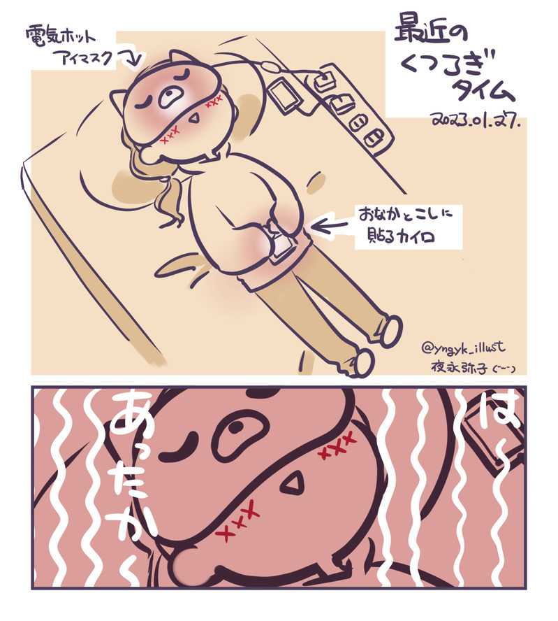 お絵かきで目が疲れたらしばらくこの状態でふとんかぶってぬくぬくしている。