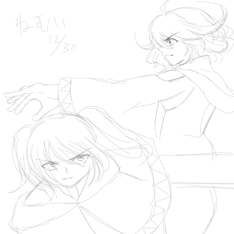 年末年始の白夜子と極夜の絵。