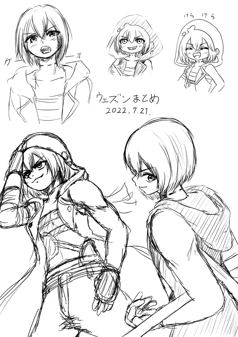 (8/5)2022/7/21〜8/3くらいに描いた、ウェズンとアダーラのボツ絵とらくがきのまとめ。