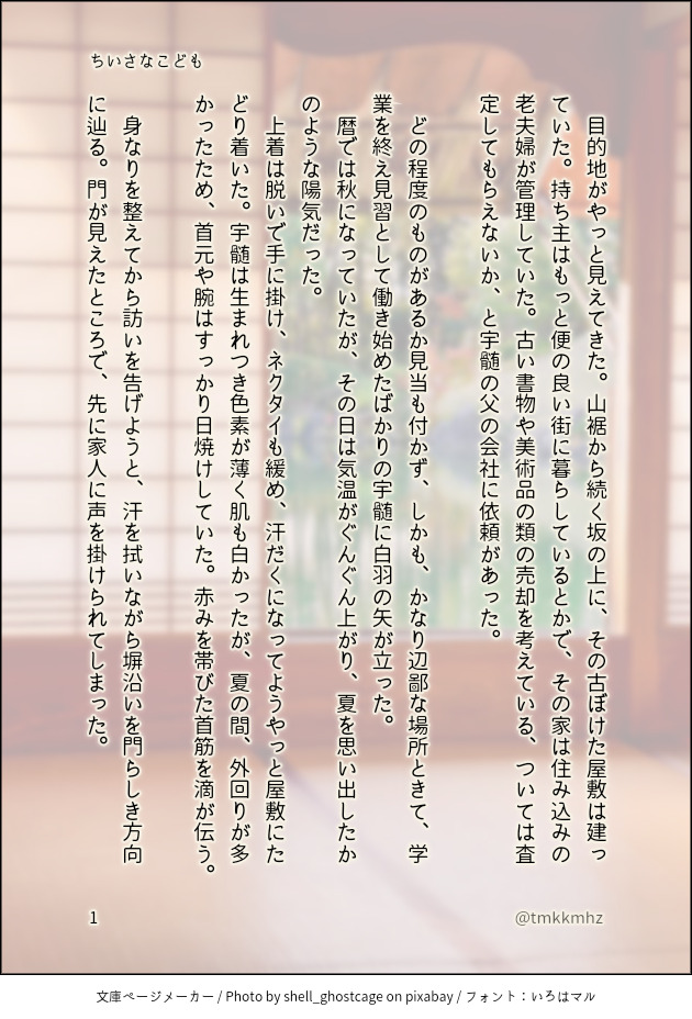 tomoko☆quiet followTRAINING2023年12月15日 お題で書こう30日間特訓 25日目『ちいさなこども』〔書き出し〕坂の上の古惚けた館。〔文末〕チラと腕の時計に目をやると、日焼け痕だけがそこにあった。 show all(+9 images) Tap to full screen (size:630x928).Repost is prohibited Let's send reactions! freqpopularsnackothersPayment processing Replies from the creator Follow creator you care about!☆quiet follow tomokoDONE公然の秘密3、開催おめでとうございます。書けたところまで、またしても書きなぐりのそのままです。2月に本にできるといいなと思っています。パスワード外しました。表紙は同人誌表紙メーカー様よりお借りしています。これまでのお話は、 https://poipiku.com/3560528/11369155.html です。 19 tomokoMEMO『まるごとの愛』を書き始めた時のメモ。アプリにプロットやらいろいろ入れたけど、結局手書きしてやっとまとまったのを思い出した。過去の私に今の私のSiriを叩いて欲しくてアップ。 2 tomokoDONE公然の秘密2、開催おめでとうございます。途中まで、しかも書きなぐりのそのままですが、こんなお話を書こうとしています。表紙は同人誌表紙メーカー様よりお借りしました。▼▼▼▼▼▼▼▼▼▼▼▼▼▼▼宇善WEBオンリー「公然の秘密3」で続きを公開しました。https://poipiku.com/3560528/12226538.html 15 tomokoPROGRESS 2 tomokoTRAINING2023年11月21日から12月22日まで、「お題で書こう30日間特訓」完走しました。 3 tomokoTRAINING2023年12月22日 お題で書こう30日間特訓 30日目『幸せの音』〔書き出し〕鍵のかかった抽斗。〔文末〕ベランダには仲良く色違いのサンダルが二足並んでいる。 6 recommended works 透DONE夏と冬のおやすみ宇善💎⚡️ 透DOODLE宇善らくがき 2 GGGG1526DOODLE顔がいい宇にほだされる善 tanitboxDONENipple play and bondage with zhongli and childehttps://twitter.com/tanitbox/status/1606592757186822145 nanatuboshi_uznDONEはづちゃんのリクエスト第二弾です。服ビリを入れたお話。両思い💎⚡️で同棲もしているのに、不安に駆られる⚡️の話。少し病的で不穏です。それでもよろしければお入りください。えっちはぬるいです。あなたは成人していますか?yes/no 13 Bang_Bal_DOODLE単体版サンポに色塗るときは海賊や冒険者がこぞって手に入れたがるような宝物のようなきらめくつやつやの腹が描きたい ryuusea_DOODLESW🔞 slow mornings. curtains. 🌅PW: 18+ yes/no?I drew this back on 11/4, but I decided I would save this for last. 2 goldy_1958DOODLEลิ้นแมวกับลิ้นเสือเหมือนกันไหม pw: yes/no 5 umeboshi_jujuDONE成人済みですか?y/n
