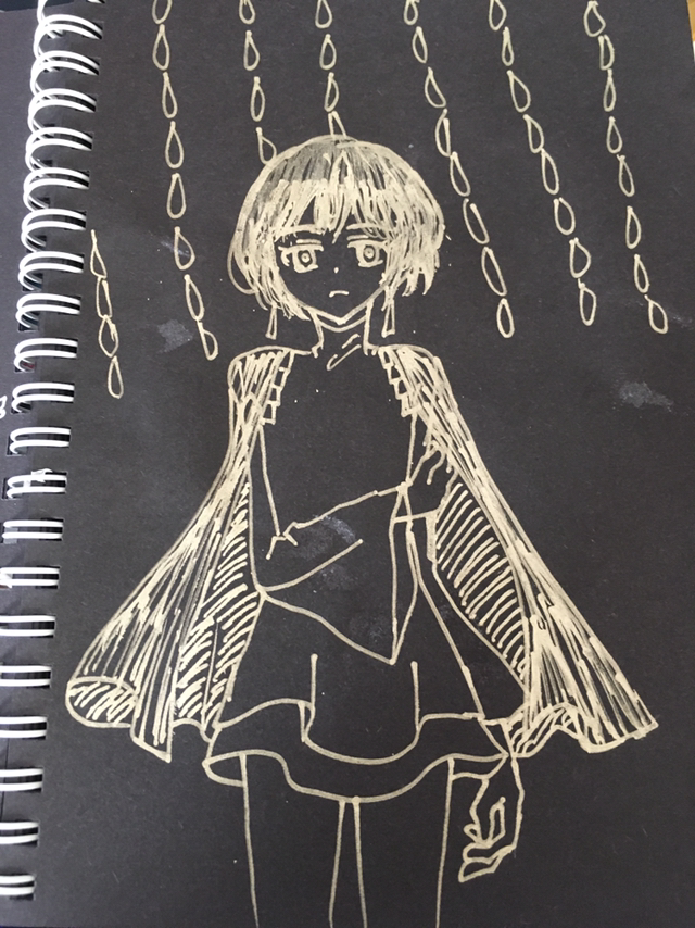 黒紙にルプルーム・ピグメントという水性顔料ペンで適当にガリガリ。