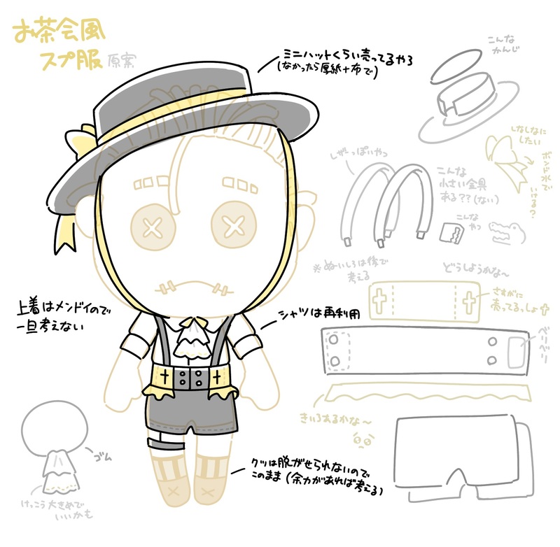 いつの日かに描いた自分用のぬい服メモ(,,⊕︿⊗,,)支部に入れるわけにもいかないしいつまでもフォルダで寝かせておくの可哀想なので供養