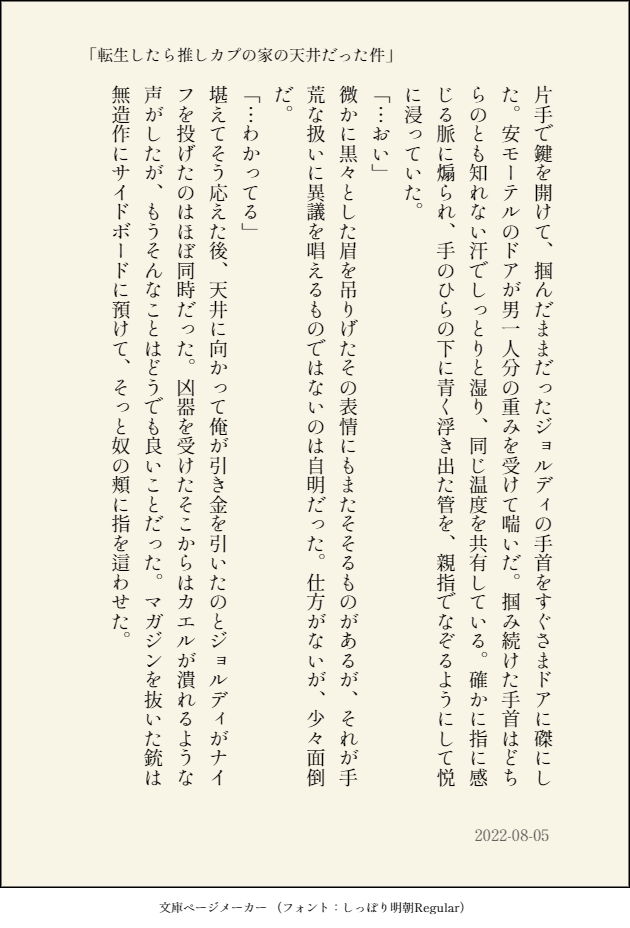 むさしの☆quiet followDONEこっちに上げてなかったジョルデン モブがいます推しカプの家に転生したら…というSSを書く遊びを友人としたときのものです2022/08/05 ##ジョルデン Tap to full screen (size:630x928).Repost is prohibited Let's send reactions! freqpopularsnackothersPayment processing Replies from the creator Follow creator you care about!☆quiet follow むさしのMAIKINGジョルデン 書きかけ 本編後のアルビオンについてうろ覚えで書いてる 976 むさしのDOODLE むさしのMEMOジョルデン よくあるすれ違いネタ 3 むさしのDONEジョルデン 140字友人にお題もらいました2024/07/03 むさしのDONEジョルデン 140字2024/06/26 むさしのDONEジョルデン 140字2024/06/25