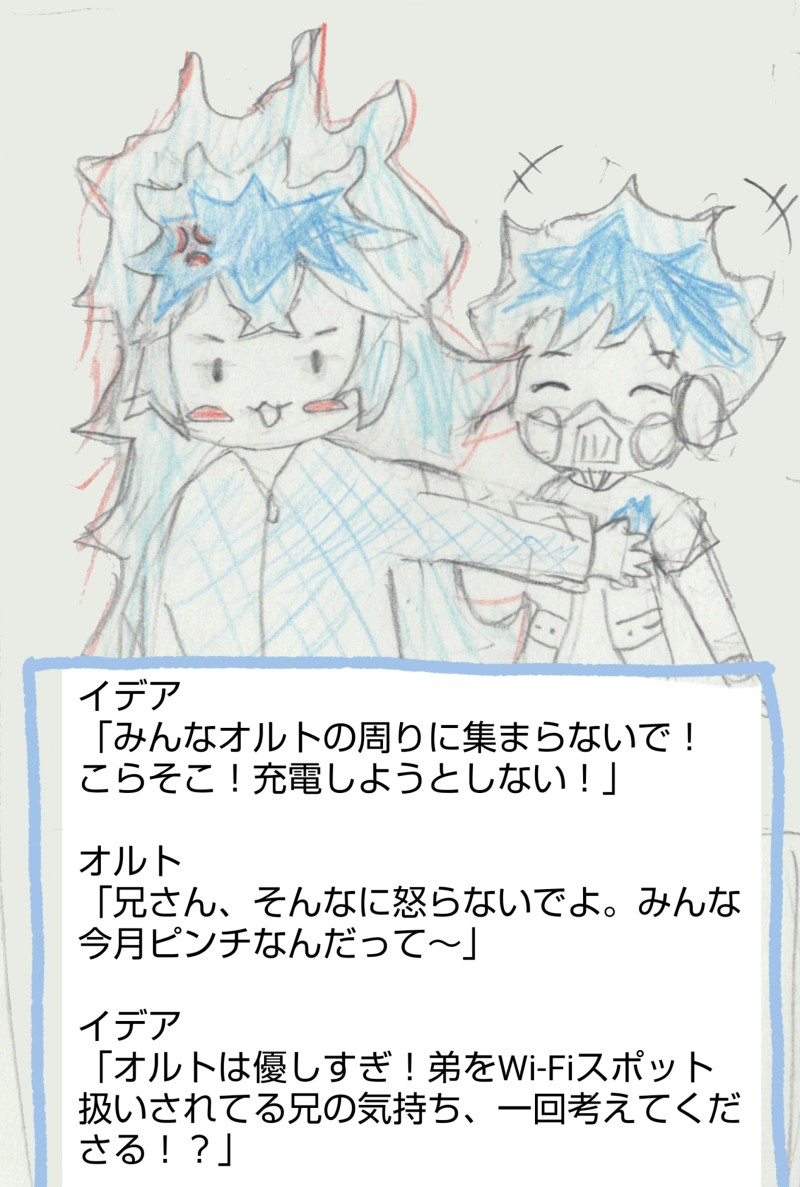 オルトくんって、Wi-Fi使えるよね?ってとこから発想を飛ばして描いた、謎イラスト。