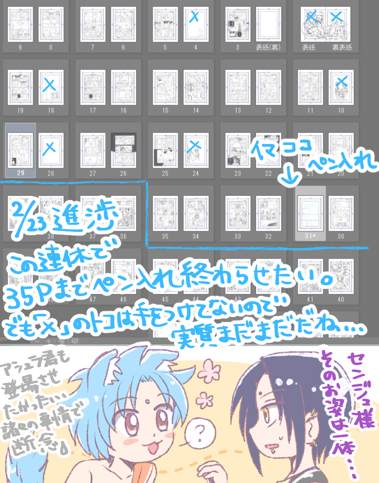 さばみ☆quiet followPROGRESS頑張ればワンチャン2月でペン入れ終わるのでは⁈と、月の頭に思っていたのは幻想だった。30P前後が自分の飽きの限界だと気づいた2024…こんなの作るぐらいなら進めろよって話ですが、尻叩きなので、生温かい目で見てやって下さい👀 ##仏ゾン show all(+1 images) Tap to full screen (size:768x979).Repost is prohibited Let's send reactions! freqpopularsnackothersPayment processing Replies from the creator Follow creator you care about!☆quiet follow さばみMOURNINGもったいない精神なので色々詰め合わせ。①暗黒タマ~見てたら赤子花を描きたくなった&お月見DAY(葉くんの髪の長さ間違えてたので訂正!)②くれしんパロ親子③Xに載せた漫画(①の方)の没おまけ④彼岸花よーあん、暗めにするか一生悩んでたver⑤はおあん。令和のはおあんが素晴らしすぎて滾ってた⑥サーフィンせんさち別ver⑦アクキー島人せんさちラフ 7 さばみDOODLEえっくすくんで言ってた、ふんばりがおか町内祭りに行く親子のらくがき🎆落描くより仕上げるもの先に仕上げた方がいいのにな…時間をいつも無駄遣いしている。1枚目:冒頭こんな感じかな~と思ったけど、去年描いた漫画と夫婦の登場の仕方がかぶってたw2枚目:夫婦の浴衣の色合いはこんな感じかな~絵。3枚目:なぜか臨戦態勢花ちゃん。 3 さばみDOODLEすっかり夏になったのに、きちんと絵を仕上げる力が湧いてこない🐟あれこれ形にしたいせんさちはあるのだけどなぁ~‼︎1枚目:海の日が今年もきたぞ!2枚目:前に描いてたけど載せてなかったこれも海の絵。3枚目:驕マハ後の話を練っている。資料集めに🇮🇳に行きたい🚶 3 さばみDOODLE夏の絵はいくらでも描きたい🏄♂️最近は雨宿りしてる話を考えたりしていました。まとめられたらいつか描きたいなぁ。追記3枚目:メイドの日アンナちゃん(+女装注意)ハロウィン考えてる時だったか、メイド服似合うなアンナちゃん…と思ってたので。すごく既視感があるのだけど何だか思い出せない。ばりばりの女装男子も好きだけど、似合わないがに股女装男子も好きだ。 3 さばみDOODLEとにかく無性にたまおちゃんを描きたかった…!可愛く描きたいのに!画力がねぇ‼︎2枚目はせんじゅくんとサッちゃん。せんさち描いてるのにせんさち描きたいってなに???お互い意識せずに近距離でわちゃわちゃやってるのも良いよねと先日考えてたわけですが。二人が何かやりとりしてるだけで可愛いと思ってしまう今日この頃🥳 2 さばみPROGRESS冒頭はこんな感じです🚪今回4、5ページずつ仕上げてく作戦をとってるわけですが、永遠に描き直してて進まない😇やはり一気に下書きとか、ペン入れしてく方がいいのか…なお、せんじゅくんは未だ迷走し、安定しなくてどうしようかと思っている。だが、思春期せんじゅくんという大好物を描いていけるのは楽しみ🤤 2 recommended works y_satoriPAST今年のUFOの日だったり何年も前のUFOの日だったり 10 y_satoriPAST音駒2枚だけ 2 ぴったDOODLE①艦これ赤城加賀②長義/アナログっぽいやつの試し書き(2019-03-30) 2 ねここDOODLEにょ! ミフ / 032DOODLEブヤが好き ライビュ楽しかったな!最後ちょっとマボデェ 9 あさ川CAN’T MAKEちはやふるのアニメが待ち遠しくて模写したけど自分絵でアレンジ(。>д<) こまつPAST描けBJやりたいね くまのみPASTこないだ晒したやつの更に2年前くらいに描いたものと思われる物も出てきた!趣味が変わらなすぎる…笑ぎこちないけど生き生き描いてる感じがしますね(他人事か) 3 狼々(ろろ)PAST超絶過去絵メラまりをツイから回収してきました(ついっぷるとかが終了してる事実がかなり衝撃的…かなりの月日が流れているのね…)