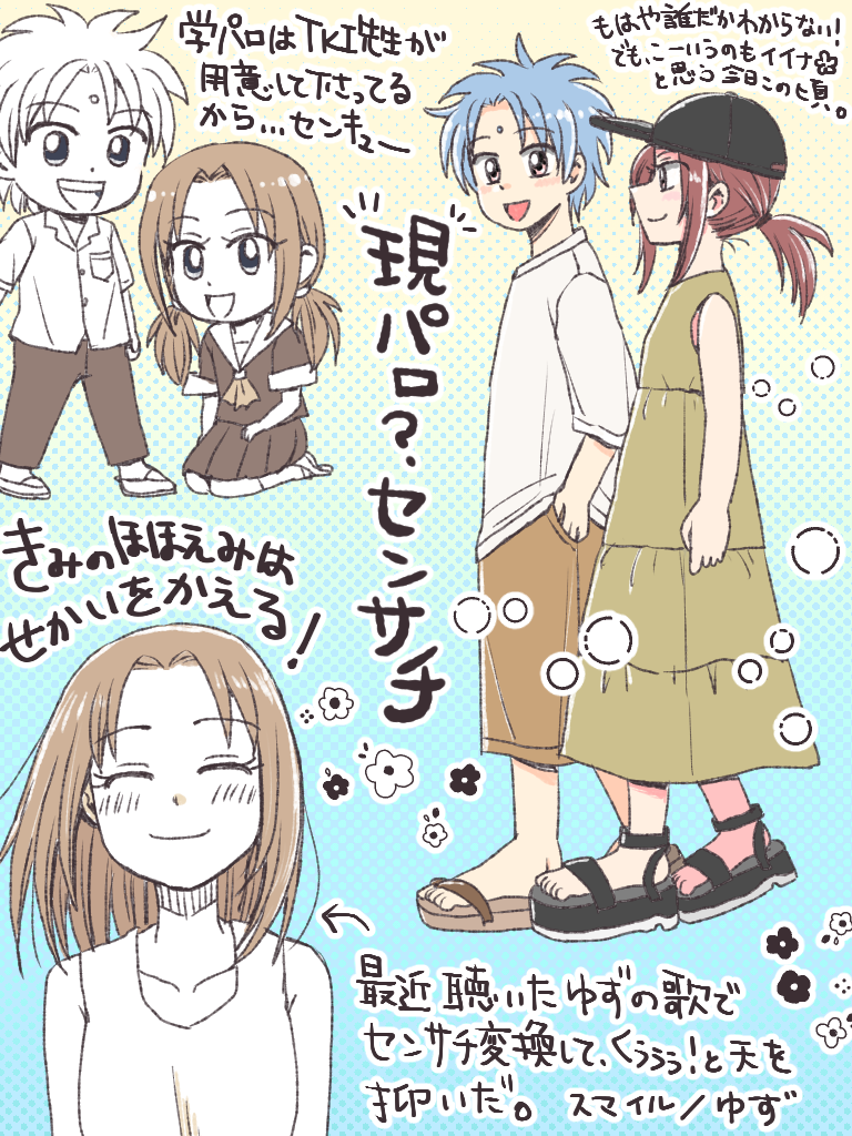 たまには現代を生きるというか、フツーの12歳な二人を描きたくなり、それは学パロじゃ〜ん!TKI先生が制服描いてくれてんじゃ〜ん!サイコ〜!っていう。なんか今、ノロイ(がんばの冒険)みたいなのを描き続けてるからか、爽やかなもの(?)が描きたいのかも。