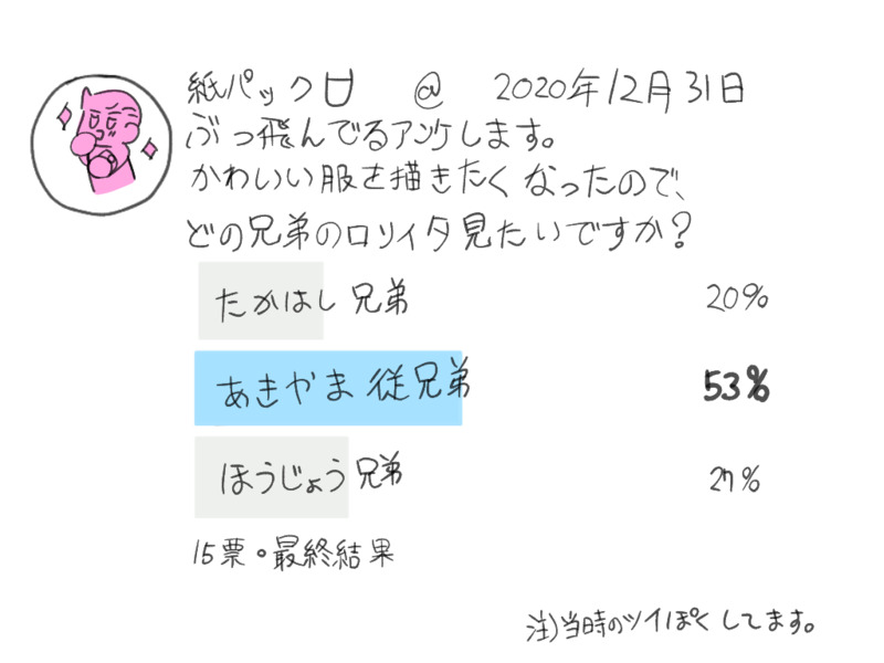 紙パック2☆quiet followPAST以前描いたロリータ女装衣装イラスト(ミニキャラにして可愛くはなっています)一枚目→サムネ二枚目→注意とこんなの三枚目以降→高橋→秋山→北条の順です。下に連れてスゴくなっています。全員分のロリータを考えてからアンケートをとったので秋山の二人を上げてから勿体ないので残りの二組もやりました。 show all(+5 images) Tap to full screen (size:1024x768).Repost is prohibited Let's send reactions! freqpopularsnackothersPayment processing Replies from the creator Follow creator you care about!☆quiet follow 紙パック2DOODLEえむご アニメ風落書きOUTな理由→パンツとかを隠すでお馴染みの「謎の光」を扱ったから光を使えばご家族で安心して見れるし、円盤がもっと売れる(と知恵袋で教わりました) 2 紙パック2DONE松本さんお誕生日おめでとうございます今年は金(髪&属)キャラたち 紙パック2DONEバレンタインイラストでにょた化やりたいなと内容は男性キャラ+おにゃの子(去年の女の子たち)絡ませたいなと現在着工中 完成したらお知らせします↓こんな感じ豪さん3月20日追加 2 紙パック2DONE松本さんお誕生日おめでとうございます&……7日とっくに過ぎているのに全く完成できずに申し訳ありません🙇orz_追記 完成しました 紙パック2DOODLE完成版 2 紙パック2DOODLE画像がキレイじゃないからコッチも recommended works 咒偶.DOODLE亲吻游戏 きんかなどくよみDONE尾杉 18↑? lto269DONEGoNaGe Au Part 1 -TBCWarning: Student x Teacher relationship, 3PPass: Did you read the warning? (yes/no) 23 サンチョDONEえっくすにも上げましたがこちらにも格納しておきます odamatsunosukeDONE Rabbi_lsDONE※『黄泉への招待状』シリーズ その後の二人のいつかのお話※ご本人様達とは一切関係ございません※晒し・無断転載等は固く禁じます※とっても仲がいいだけの💛💜※全年齢制…ですが、 💛に『大丈夫?おっぱい揉む?』を言おうとして頑張る💜の話、なのでちょっと注意です※息抜きです 1296 usanomituamiCAN’T MAKE ショコラDONE劣情増し増し逆バニーΣさん沼族ならこういう恰好しても合法ですよね!!!!!※もしかしたらR15かもしれない 2 牛ハラミDONEモブと大青 2