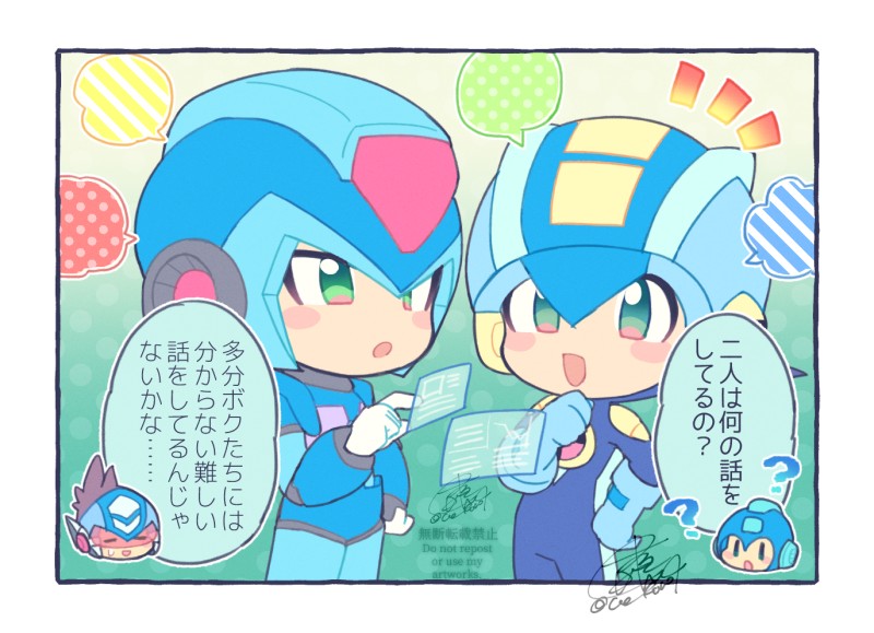 ローディング画面の1コマ漫画風に描いたロックマンズ